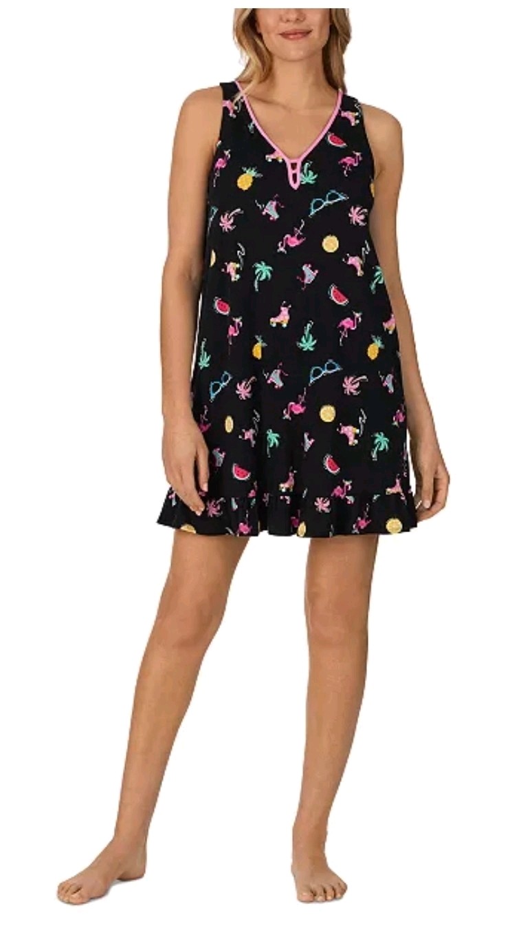 Cuddl Duds Women's Sleeveless Ruffled Printed Chemise - Black Novelty Medium