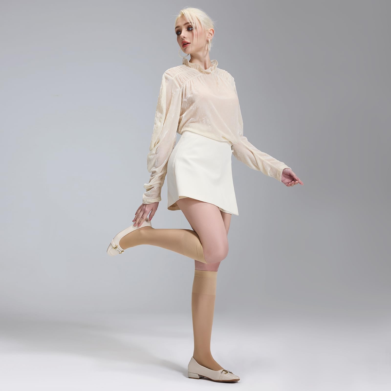 6 Pairs Knee High Stockings for Women, 30D Sheer Nylon Knee High Hose Non Sli...