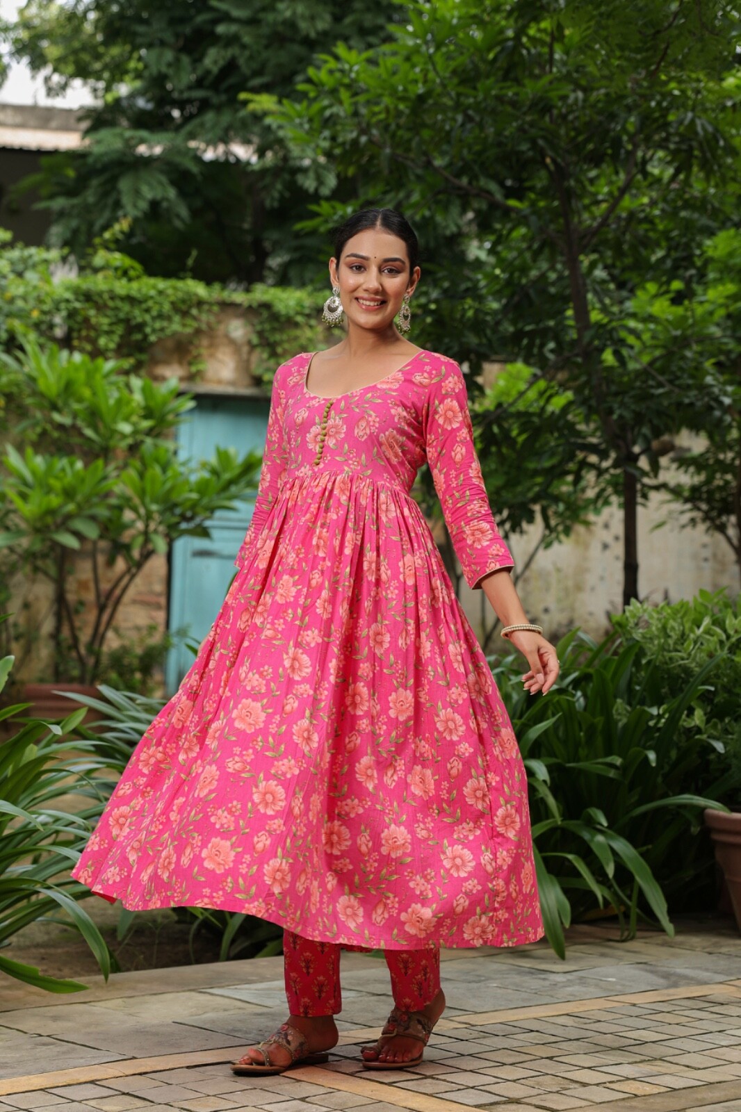 Handblock Print Indian kurta Set Anarkali Suit For Women Festive Indian Wear