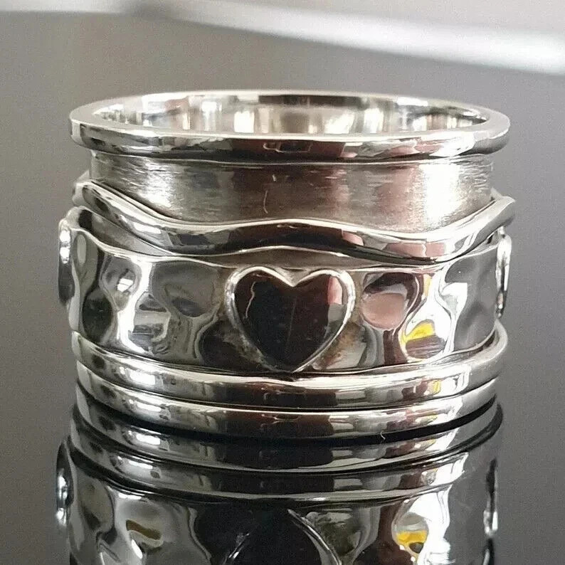 925 Sterling Silver, Solid Silver, Band Ring, Unisex, Heart Band Ring