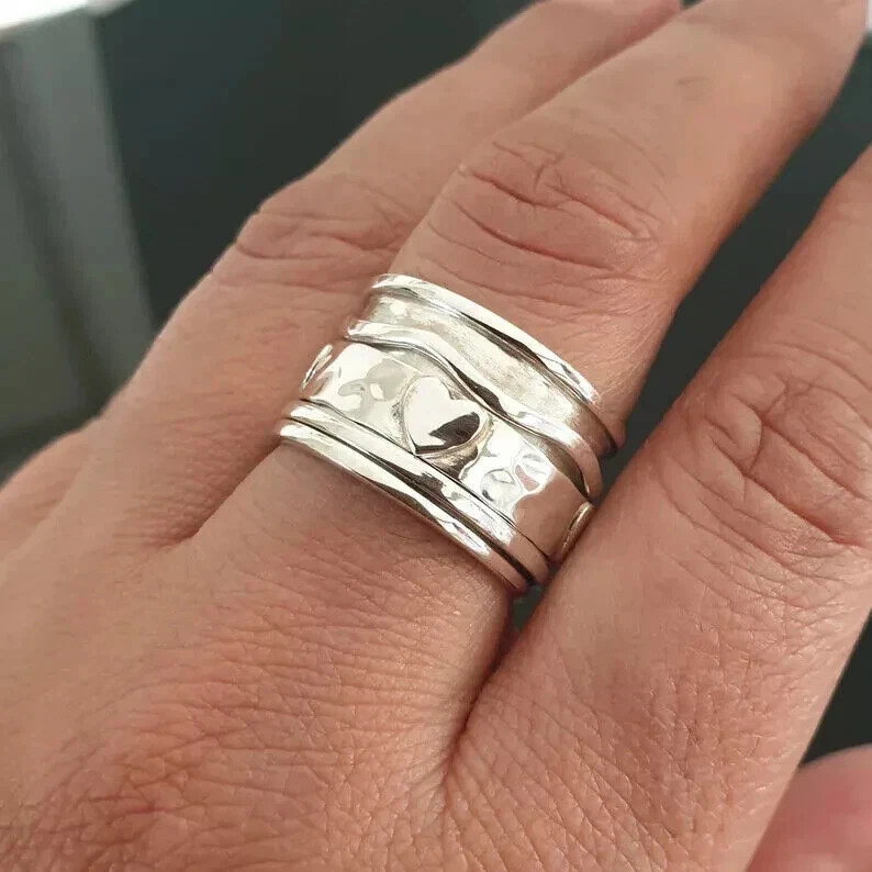 как выглядит 925 Sterling Silver, Solid Silver, Band Ring, Unisex, Heart Band Ring фото