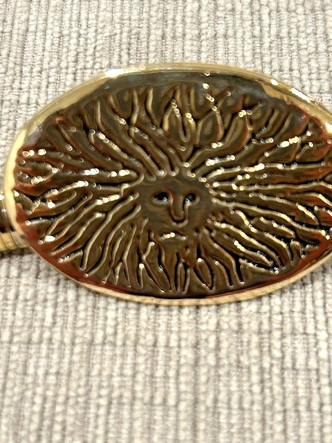 как выглядит Vintage 80s Gold Tone Skinny Stretch Belt Medallion Lion Head Buckle Size M фото
