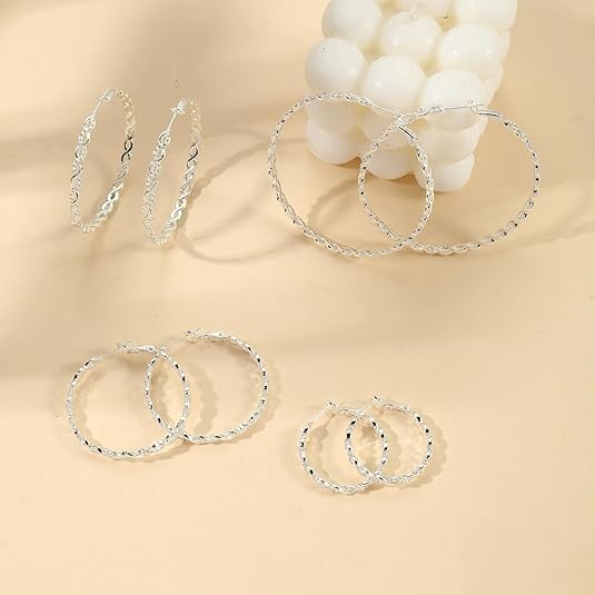 как выглядит 30/MM Silver Hoop Earrings for Women Trendy Hypoallergenic 925 Sterling Silver P фото