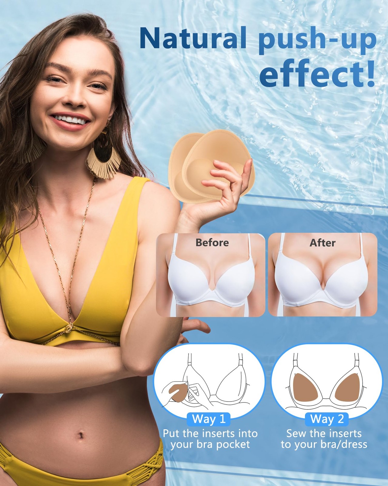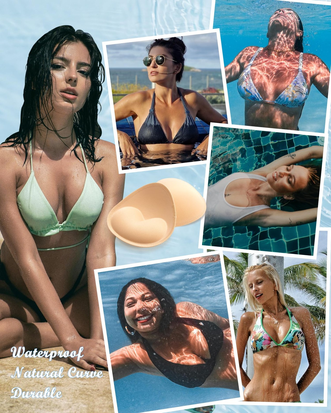 Waterproof Bathing Suit Cups Inserts - 4 Pairs Swimsuit Pads Heart Push up In...