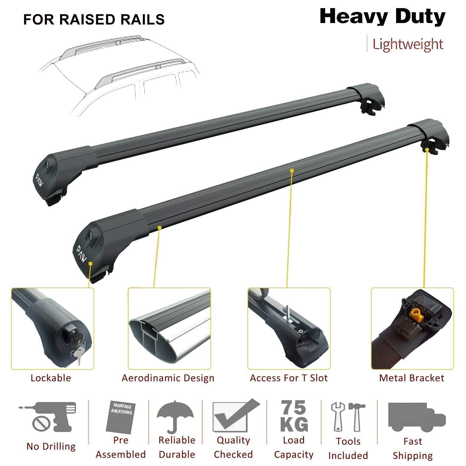 For Volkswagen Golf Variant 2007-2013 Roof Rack Cross Bar Raised Rail Silver