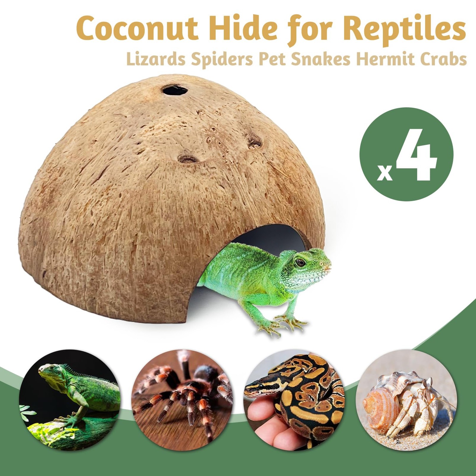 4 PCS Natural Coconut Reptile Hideouts Lizard Coco Hut Hermit Crab Hut Aquari...