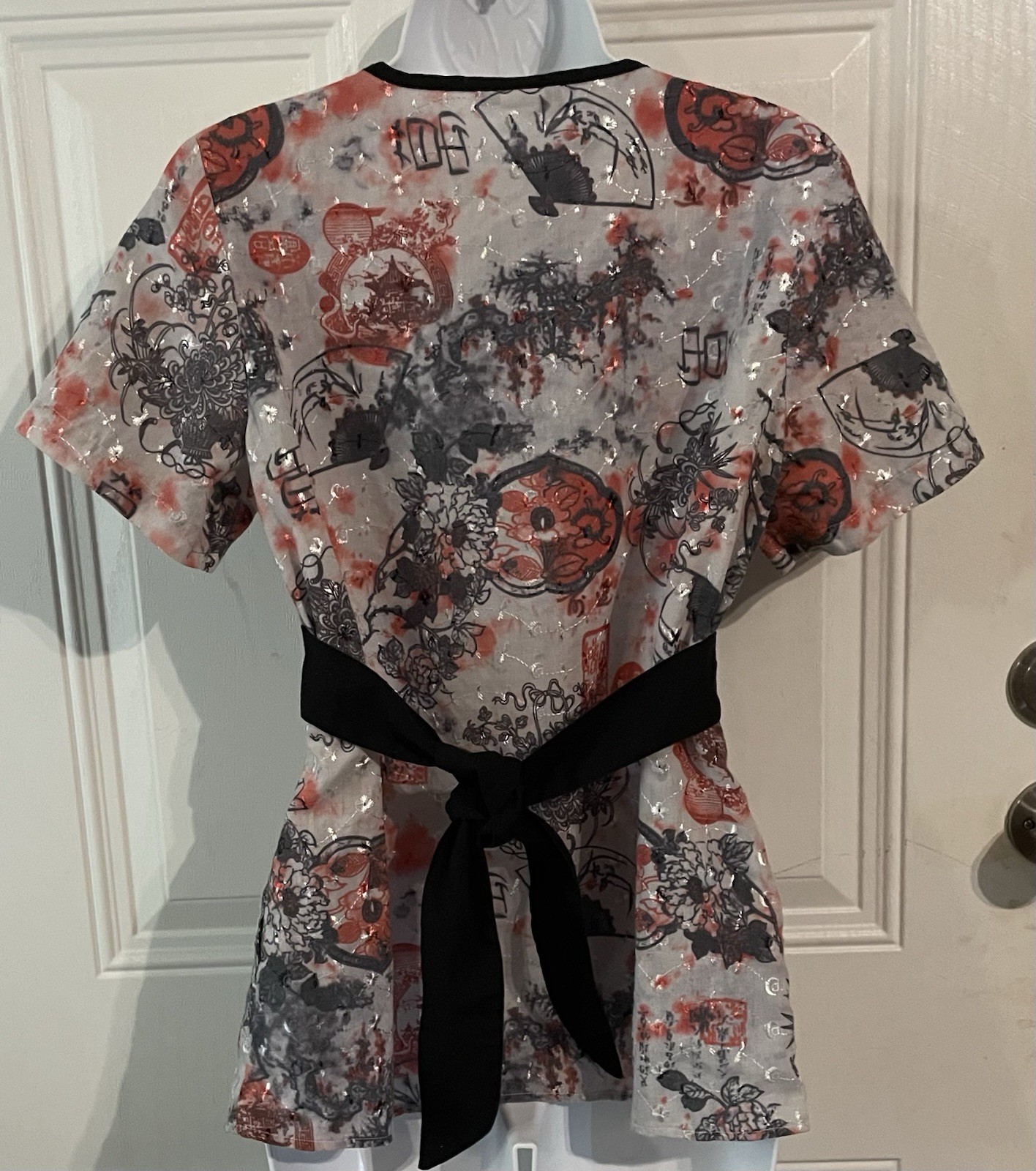 как выглядит Elan by Barco V-Neck Embroidered Flower Pattern Red 2 Side Pockets Wms Sz Small фото