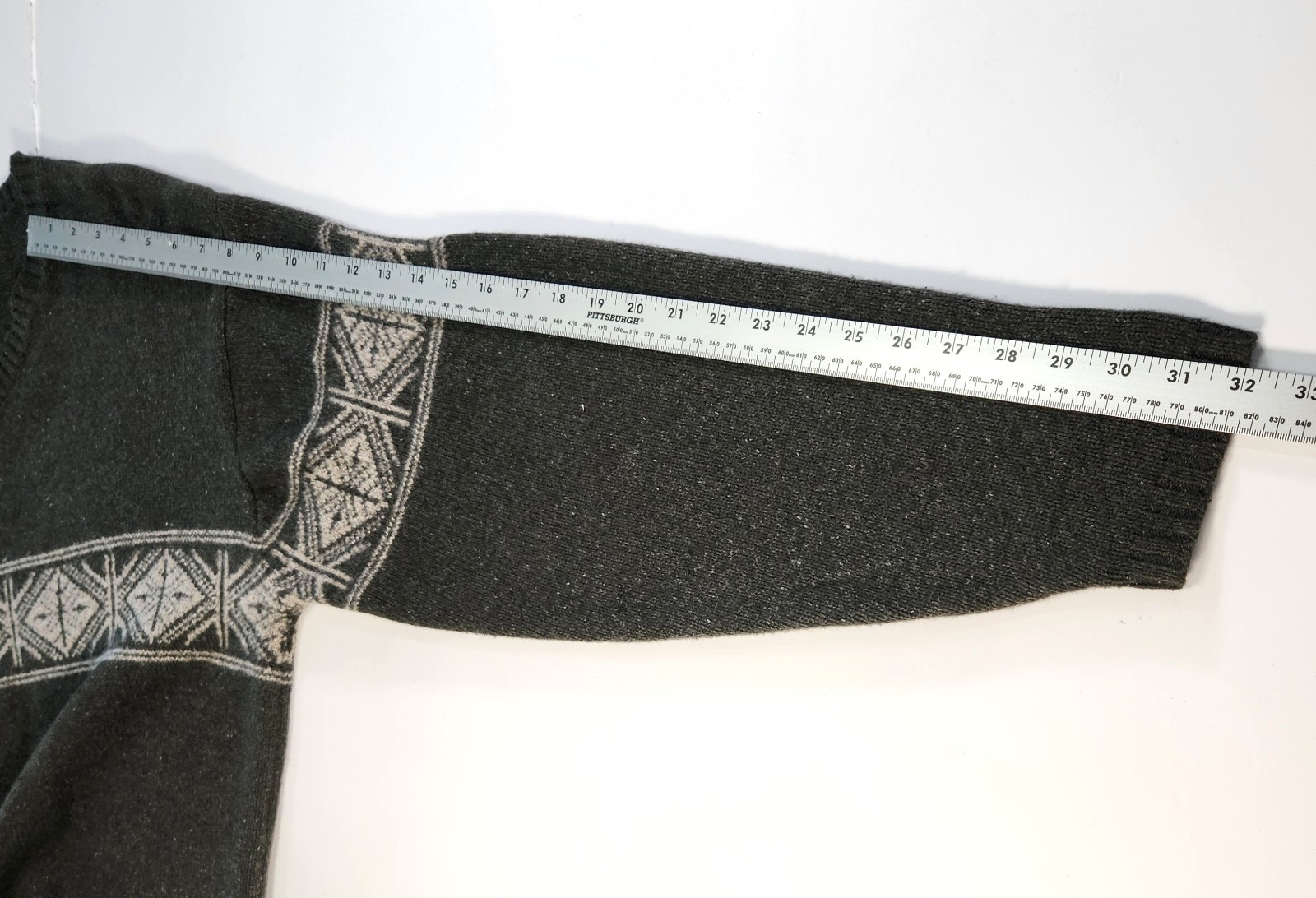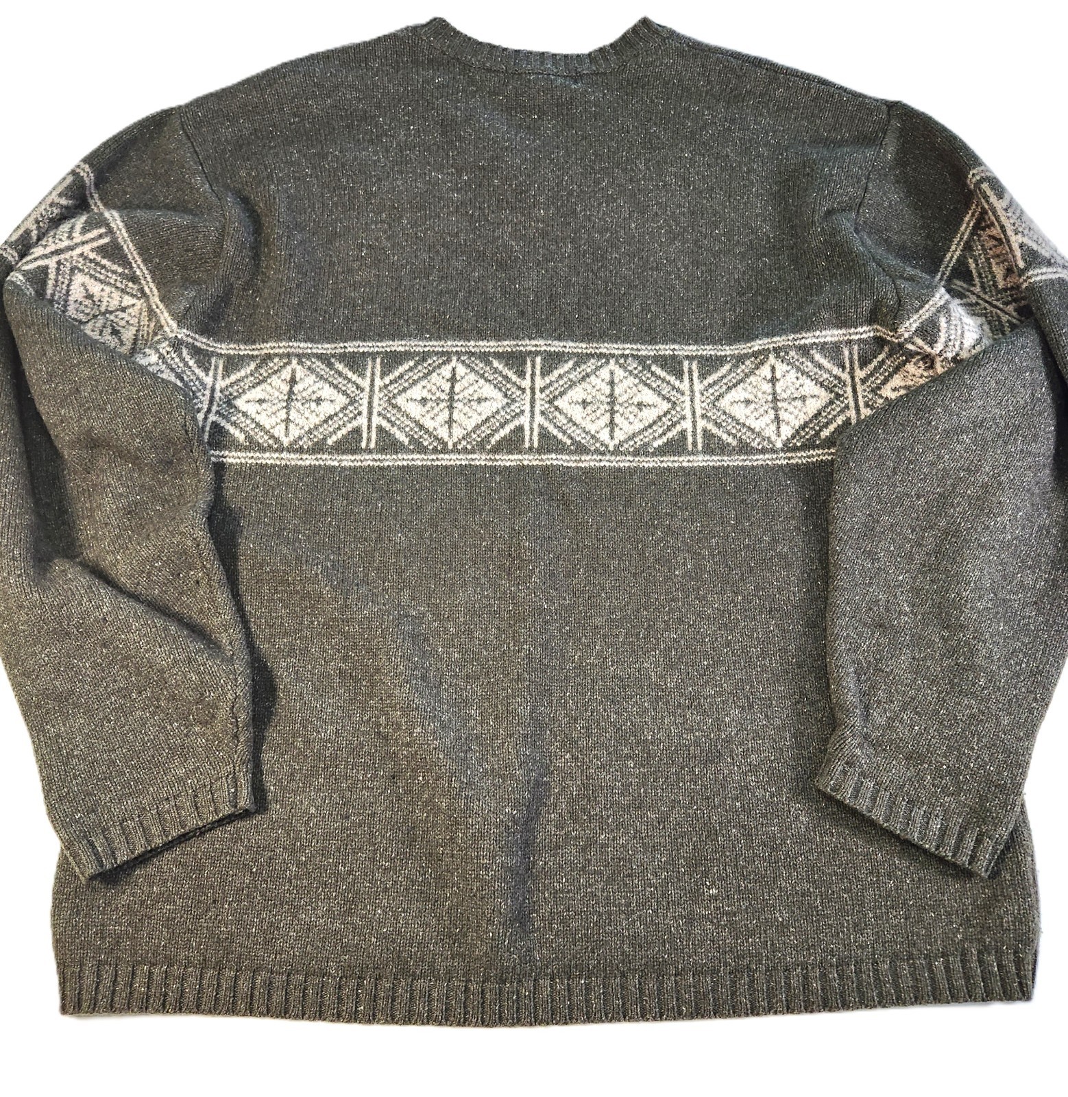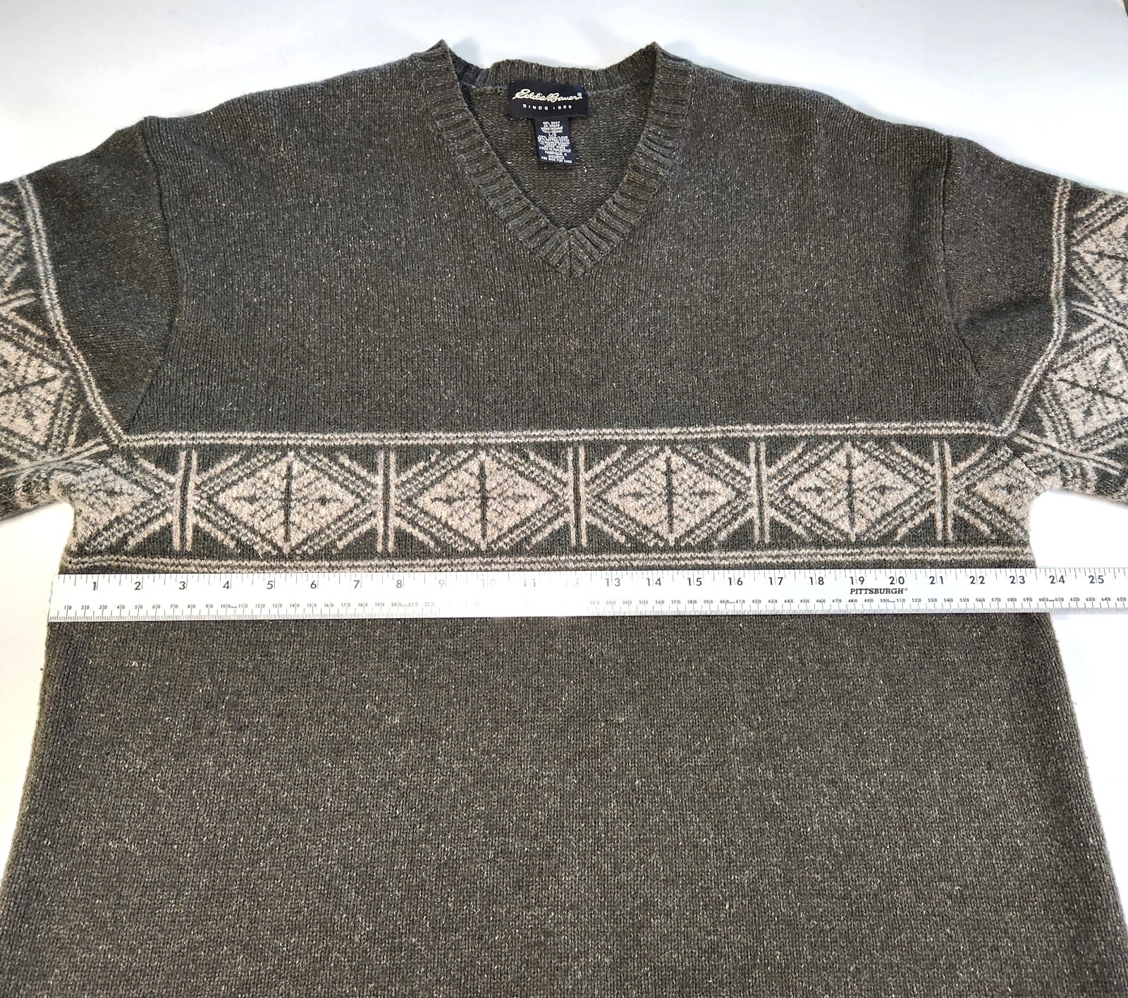 как выглядит EDDIE BAUER Mens Tall L Wool Blend Fair Isle Olive Vneck Nordic Pullover Sweater фото