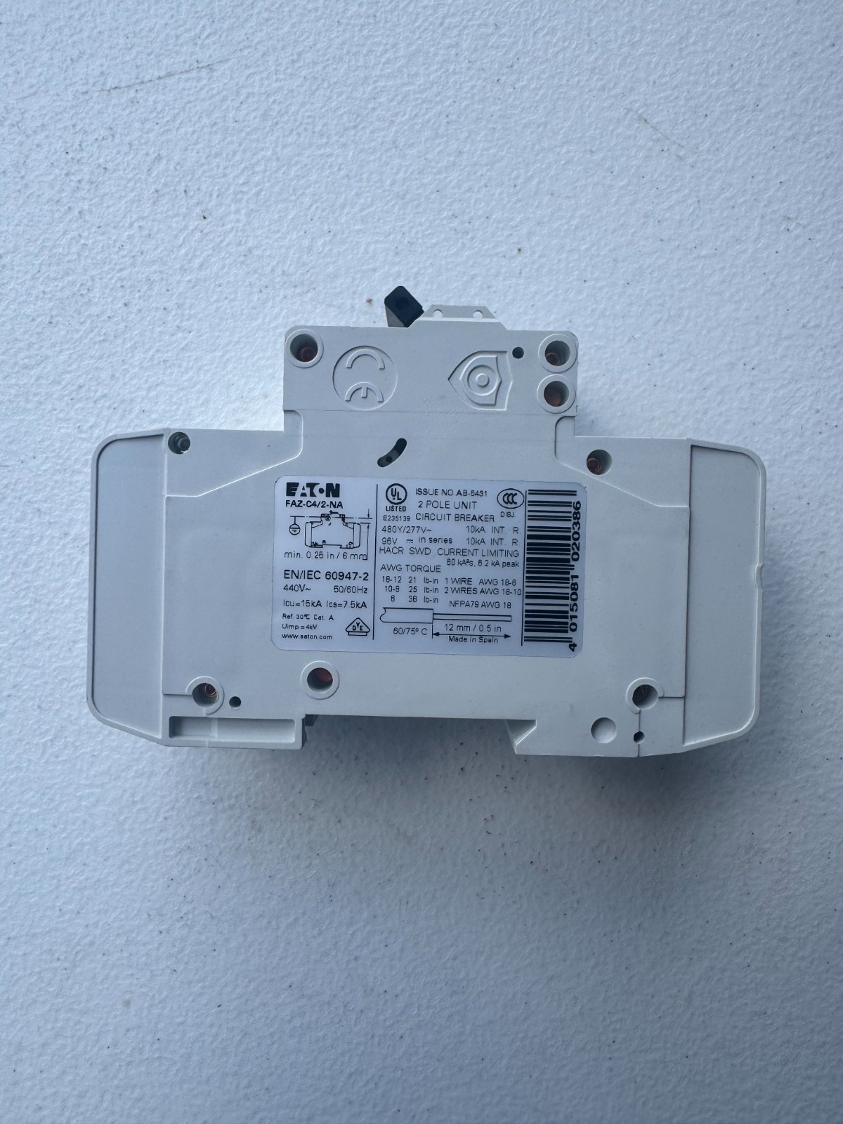 Eaton FAZ-C4/2-NA Circuit Breaker 2 Pole - 4 Amp, 277/480V lot of 5