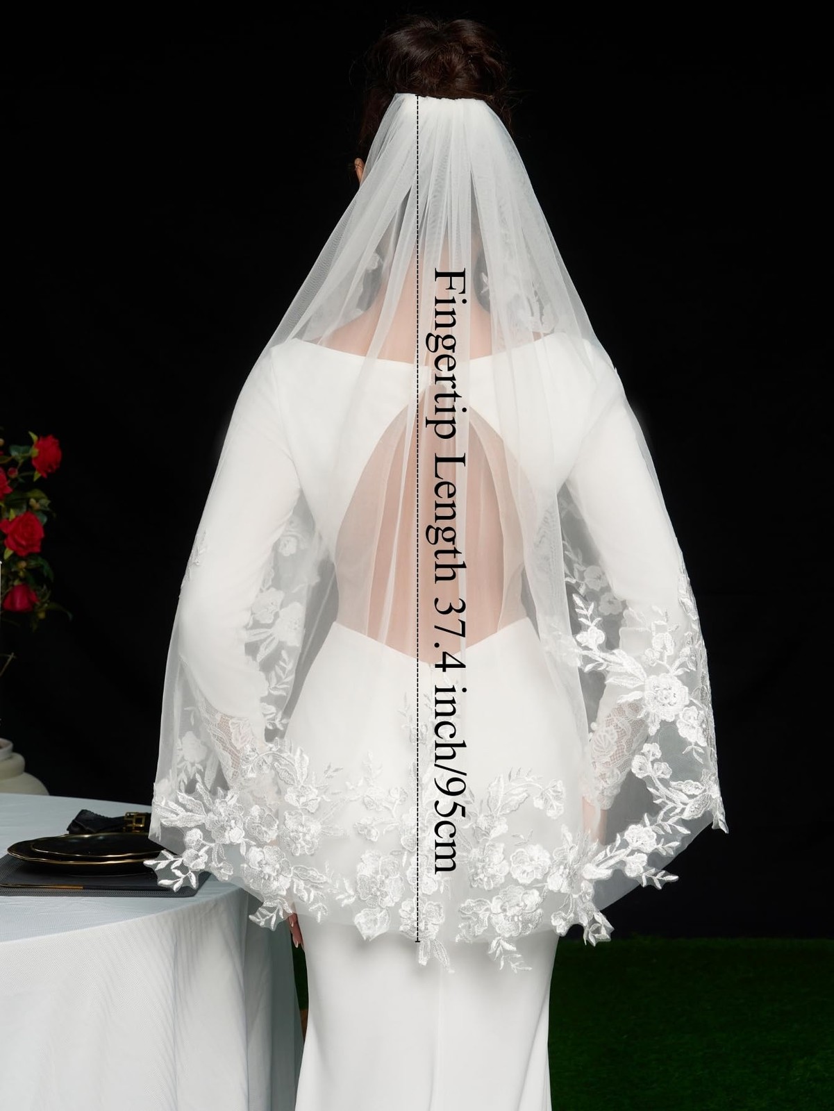 Fingertip Length Lace Floral Wedding Bridal Veil with Comb White