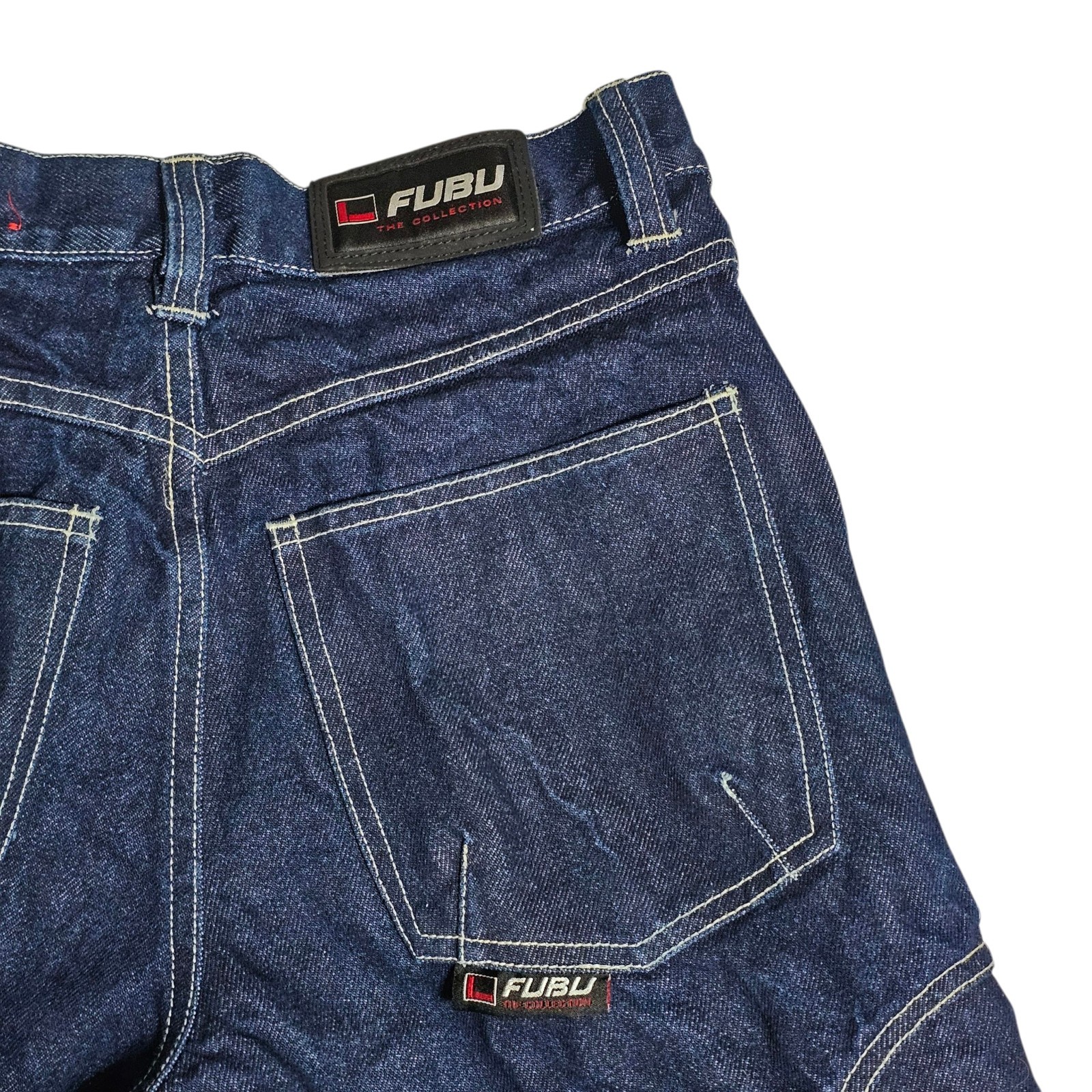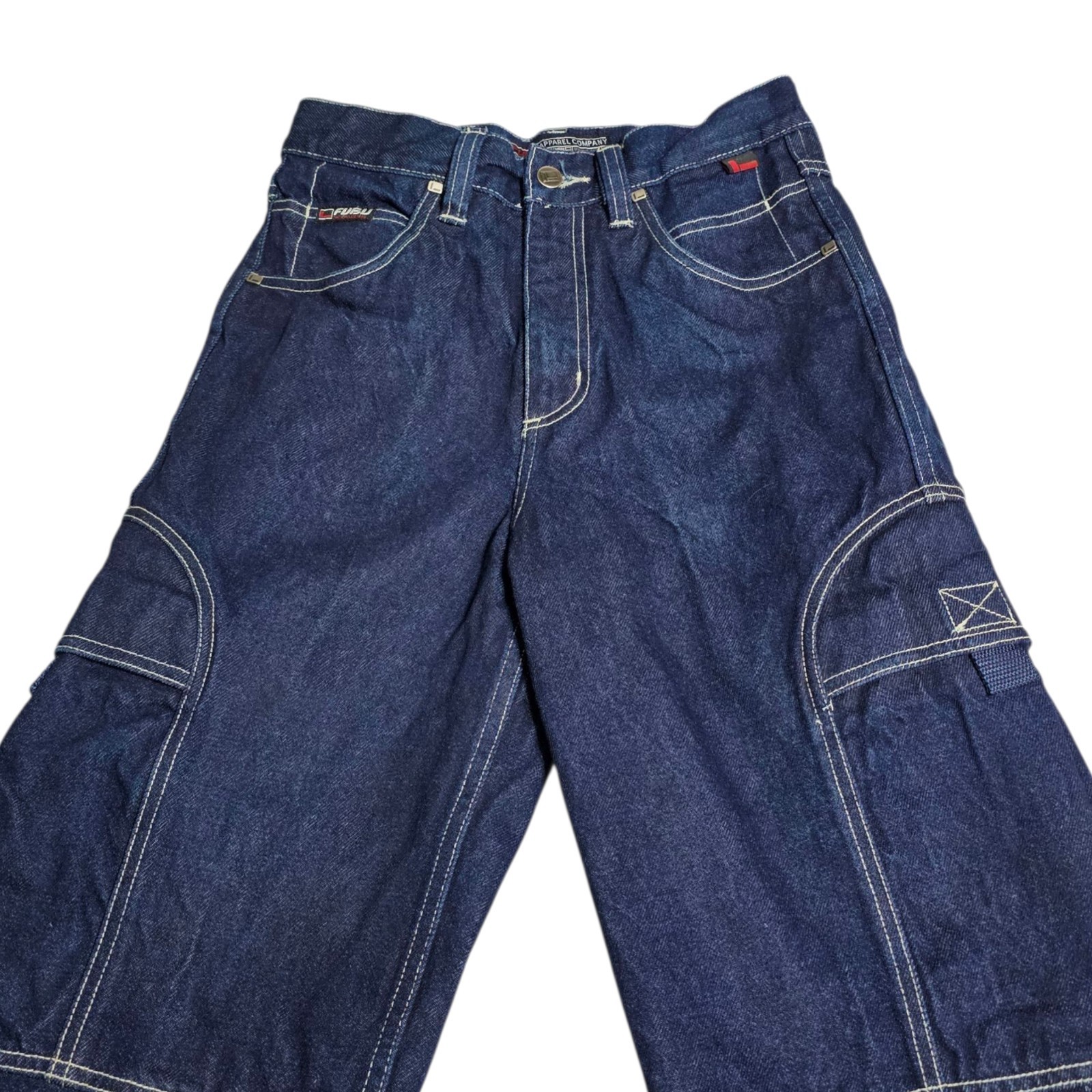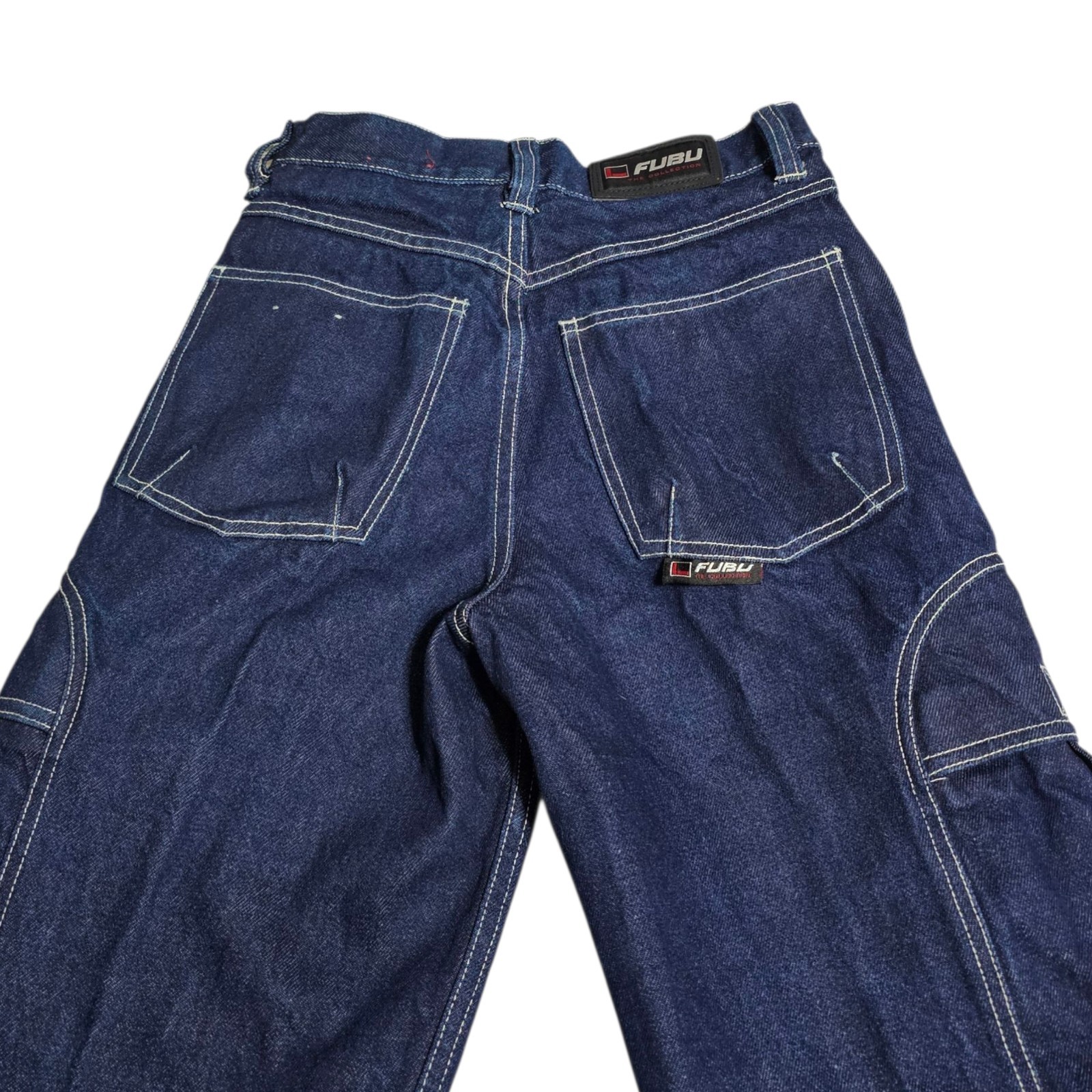 как выглядит Y2K FUBU Jeans Boys Sz 12 28x26 Wide Leg Cargo Baggy Grunge Dark Blue Denim Vtg фото