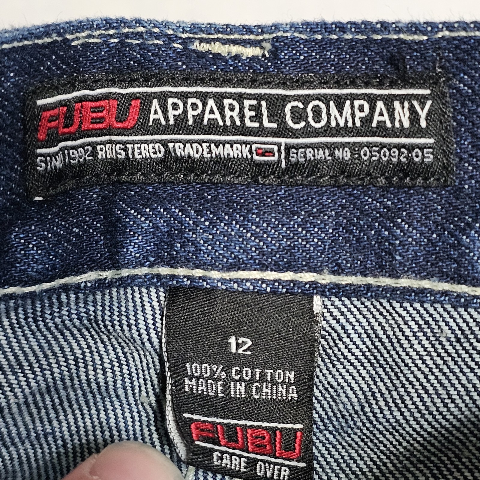 Y2K FUBU Jeans Boys Sz 12 28x26 Wide Leg Cargo Baggy Grunge Dark Blue Denim Vtg