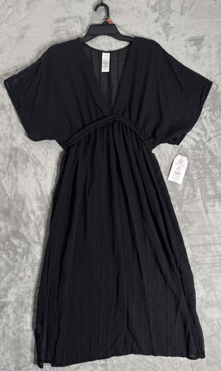 Womens Swimsuit Beach Cover Up Cottagecore Time Tru Black Sheer Size L Coastal