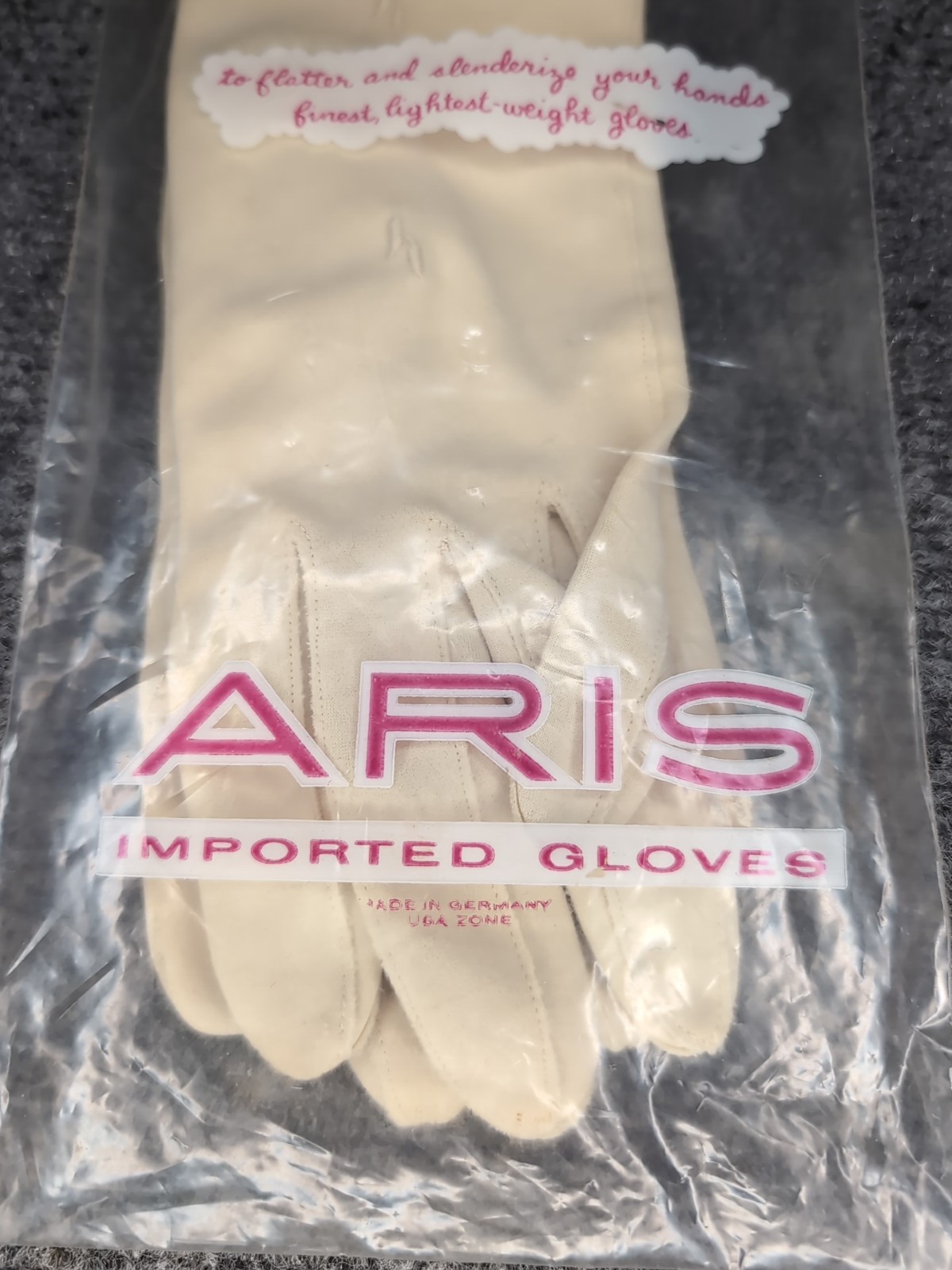 Vintage ARIS Imported Gloves 100 Cotton Kids 7.5 Size Ivory Embroidered Germany