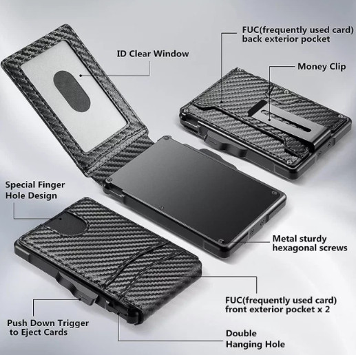 как выглядит Mens Slim Pop Up Bifold Wallet with Money Clip, Minimalist Wallet RDIF Blocking фото