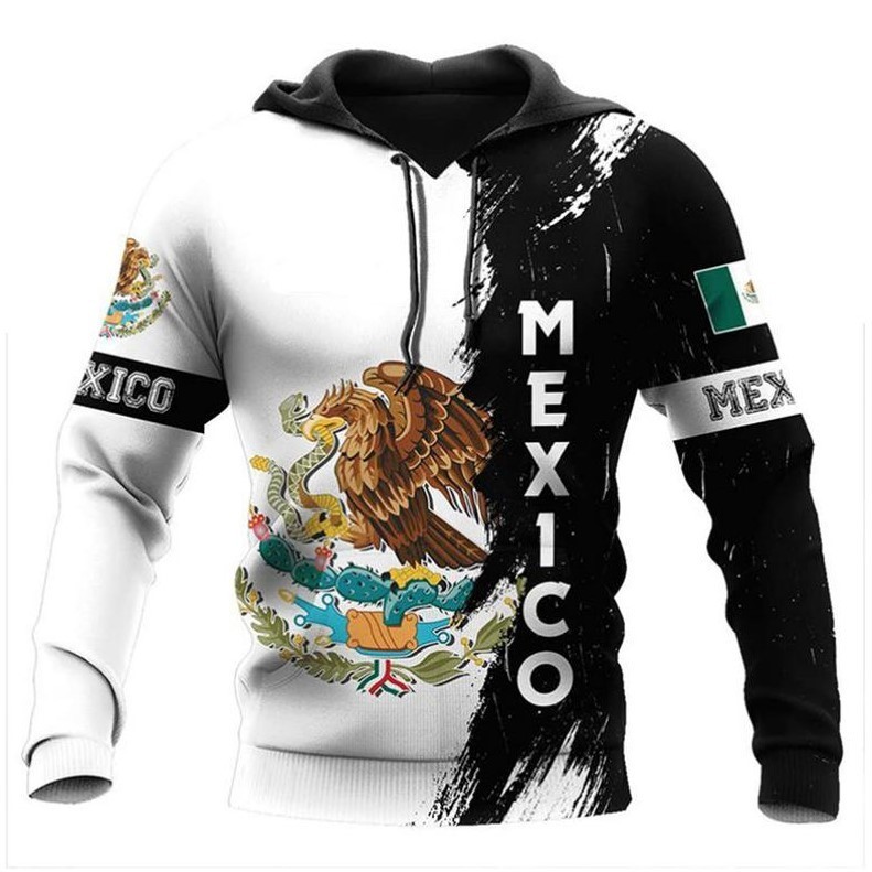 Flag Hooded Sweatshirt Men Hoodies Mexican Print Long Sleeve
