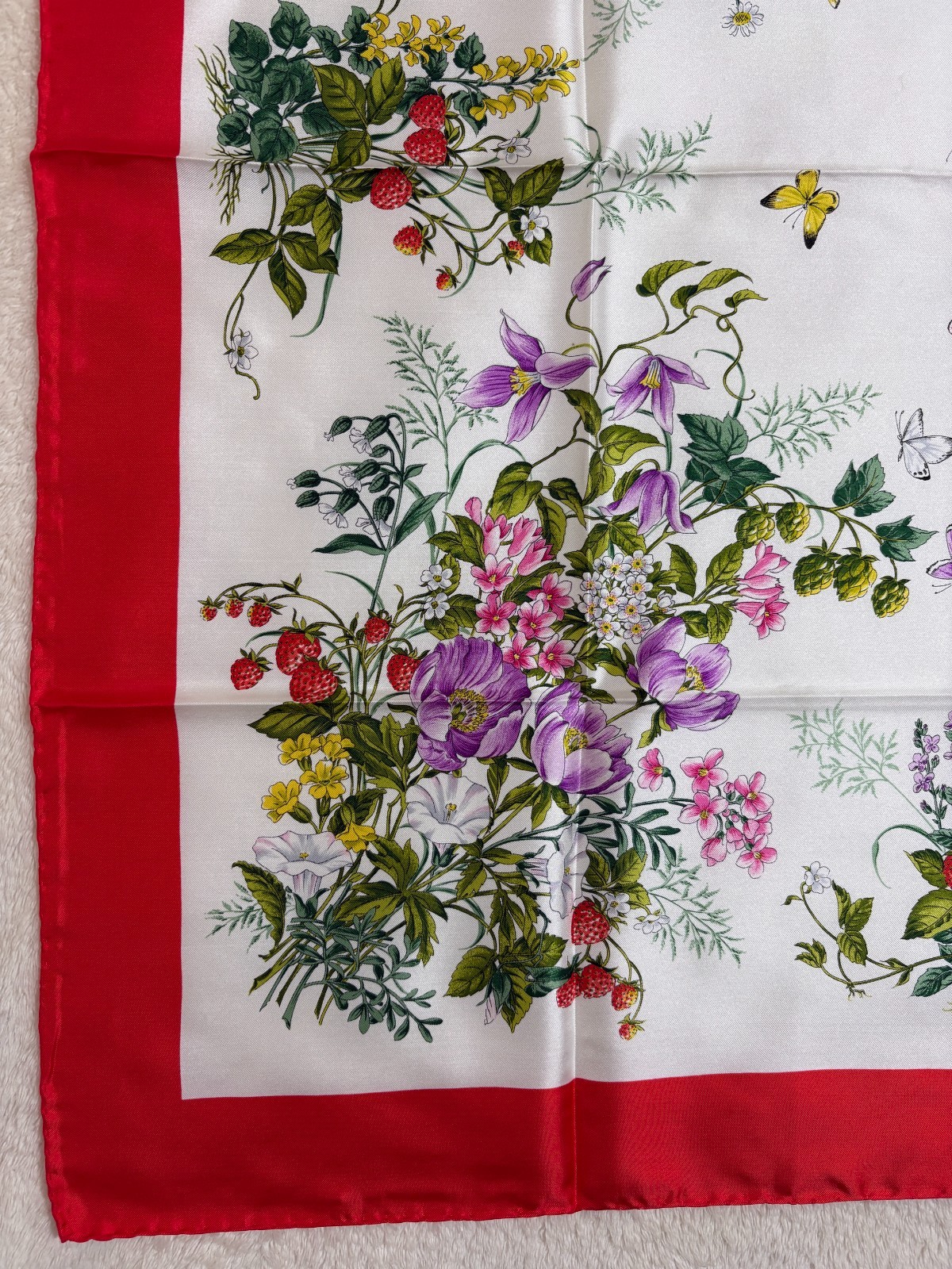 GUCCI Flora Silk Scarf Red Border Floral Accessory Collection 32.2in Vintage