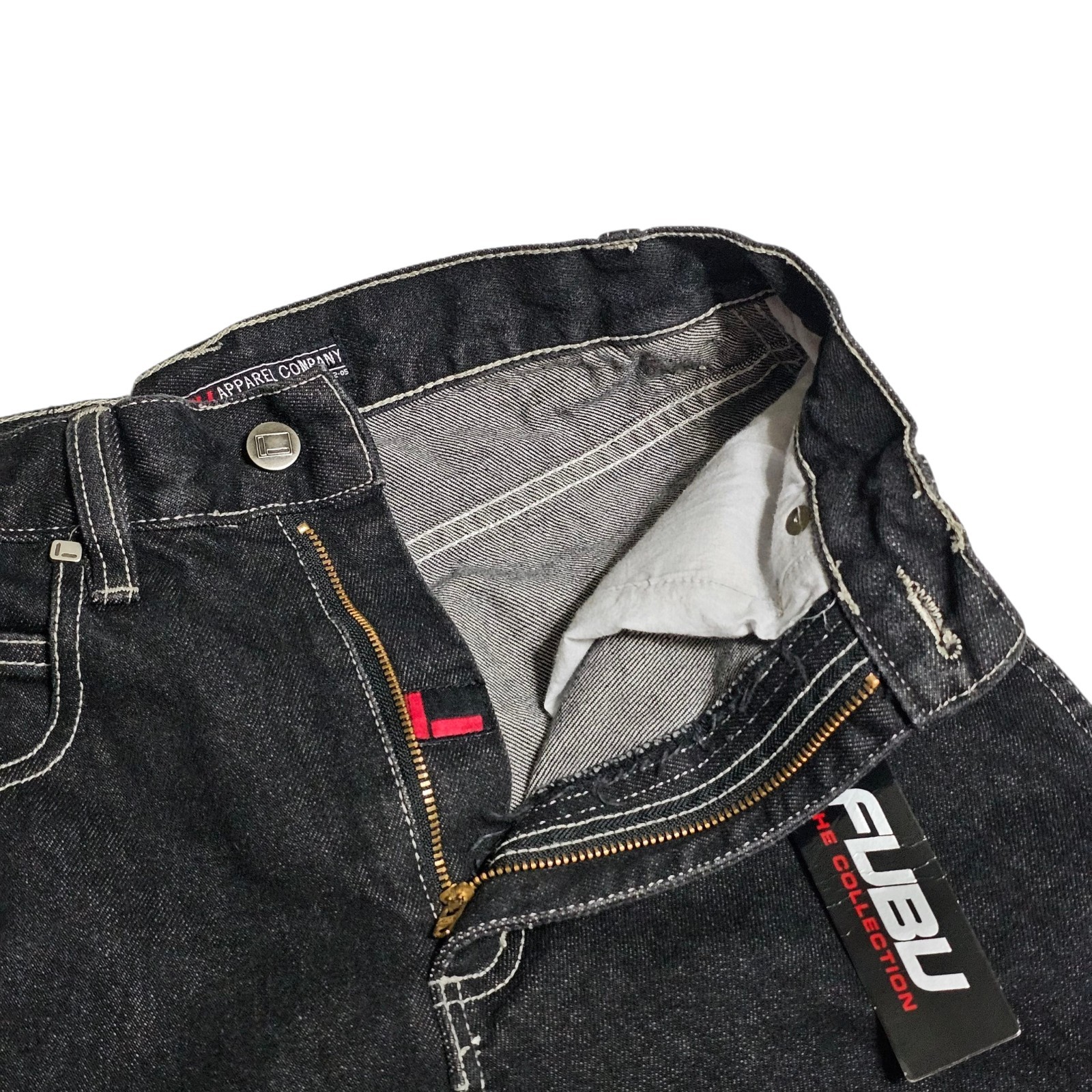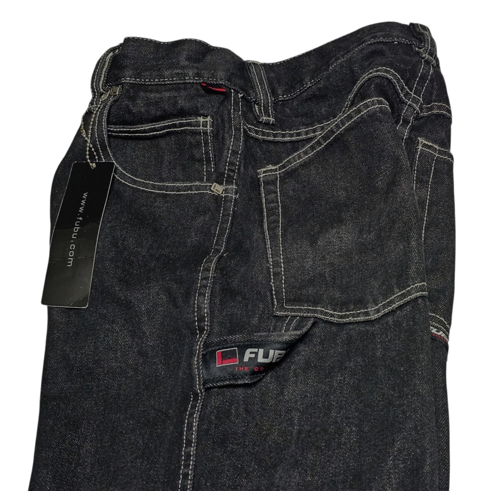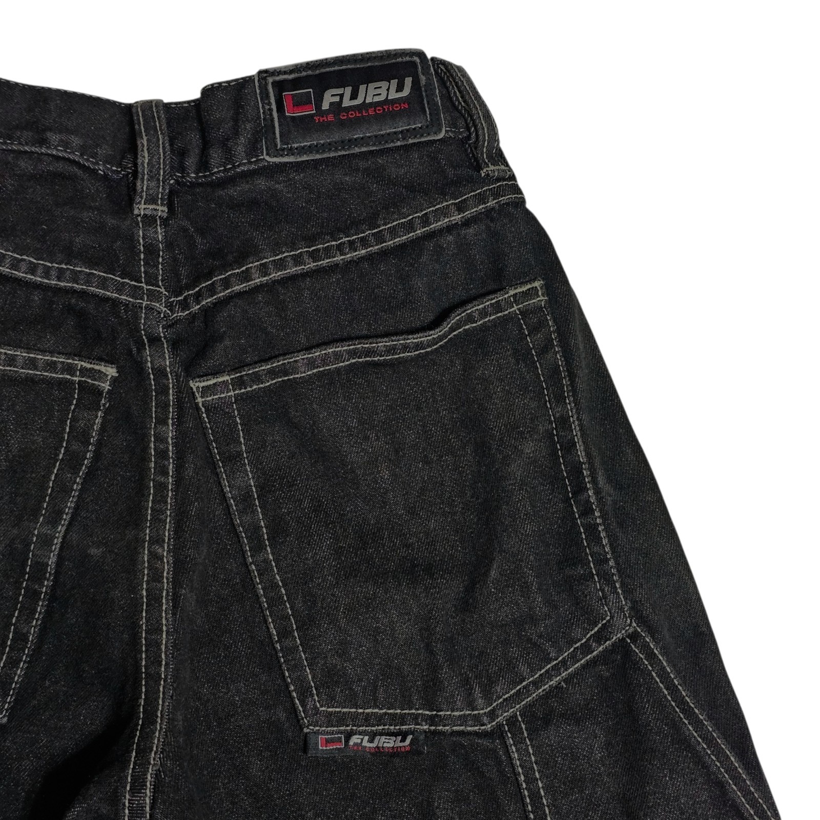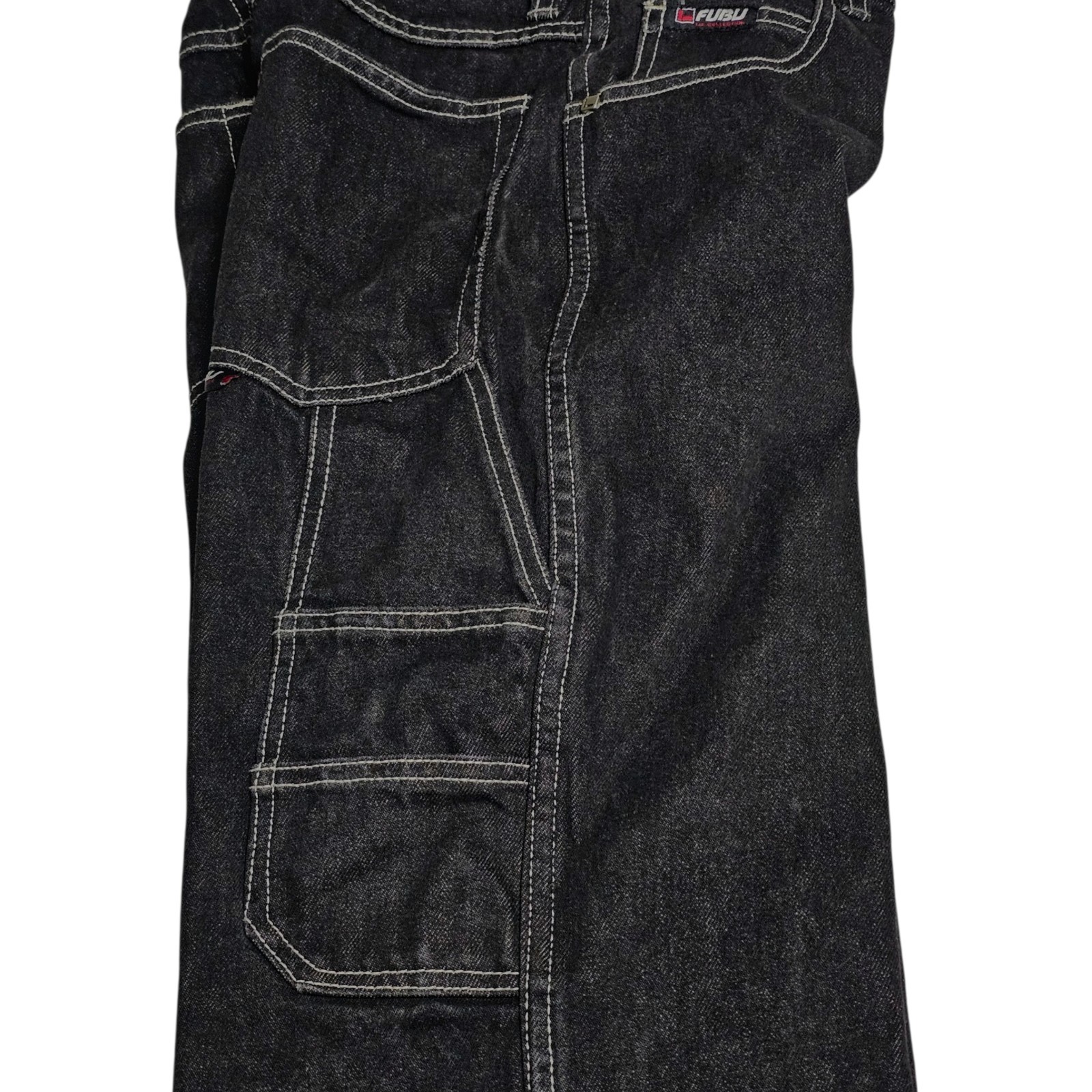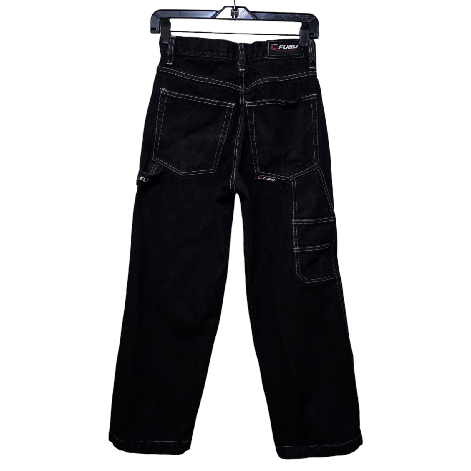 Y2K FUBU Jeans Boys Sz 10 26x25 Cargo Baggy Grunge Black Denim Vtg Carpenter