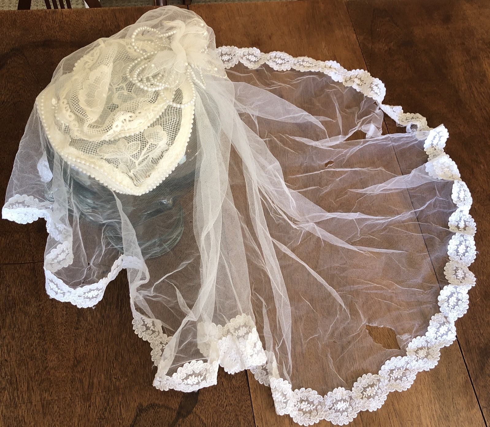 Ivory Beaded Juliette Crown Bridal Veil Vintage Wedding Headpiece W/Damage