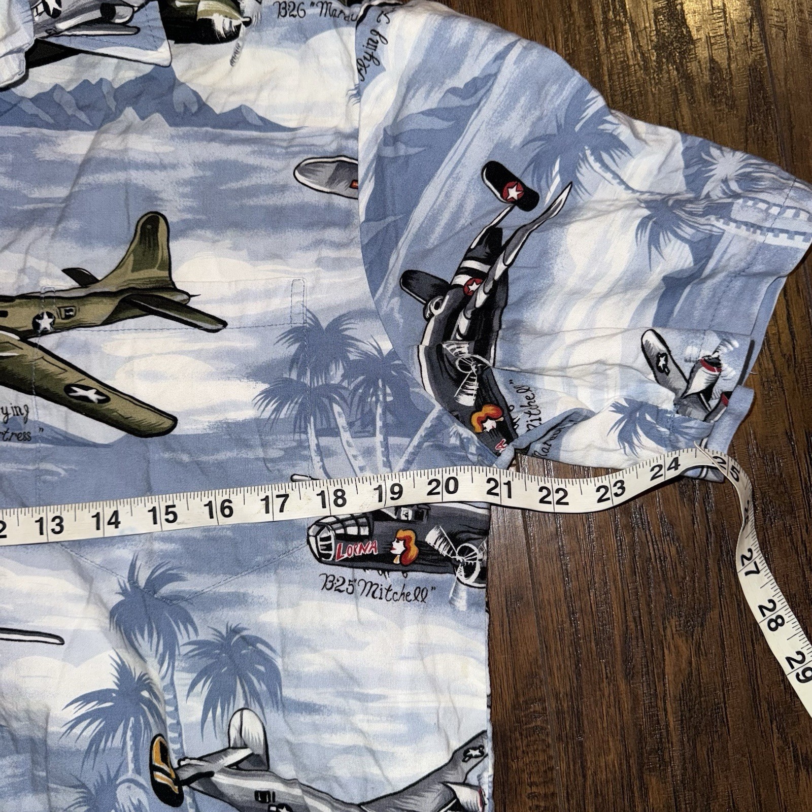 как выглядит Vintage WWII Aircraft Fighter Planes Hawaiian Shirt Military 80s 90s Floral M фото