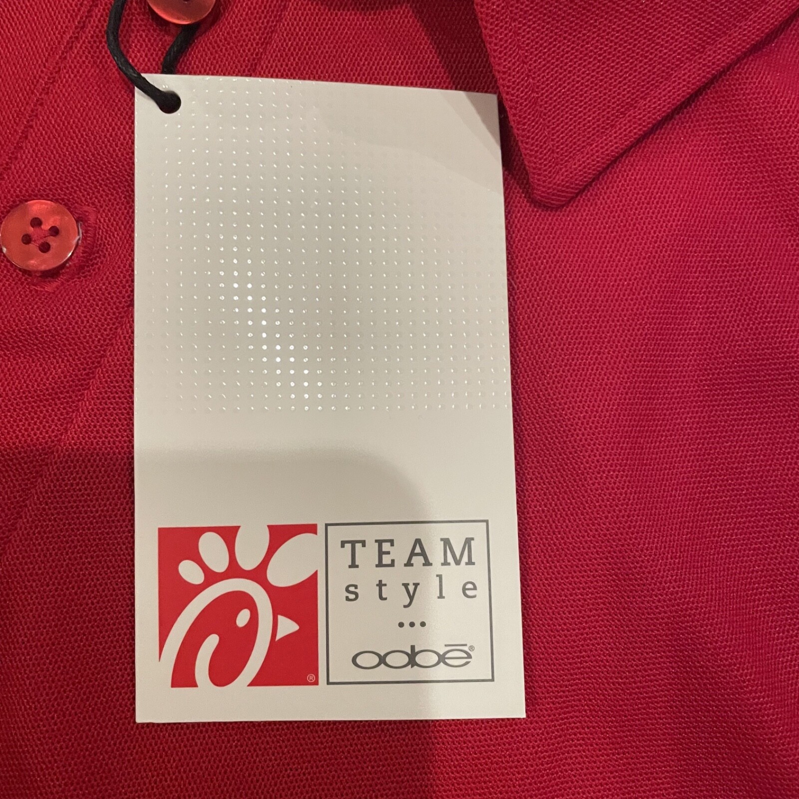 как выглядит NWT Chick Fil-A Team Style Oobe Red Short Sleeve Polo Uniform Shirt 4XL фото