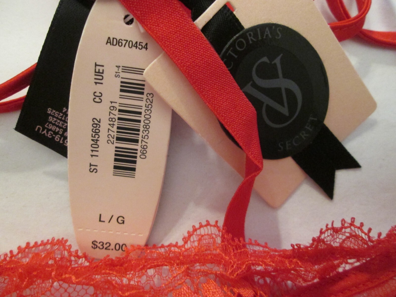 Combination: Size Large w/$32.00 tag Red Satin Cord V-String