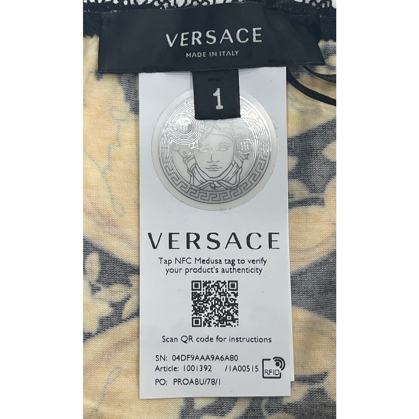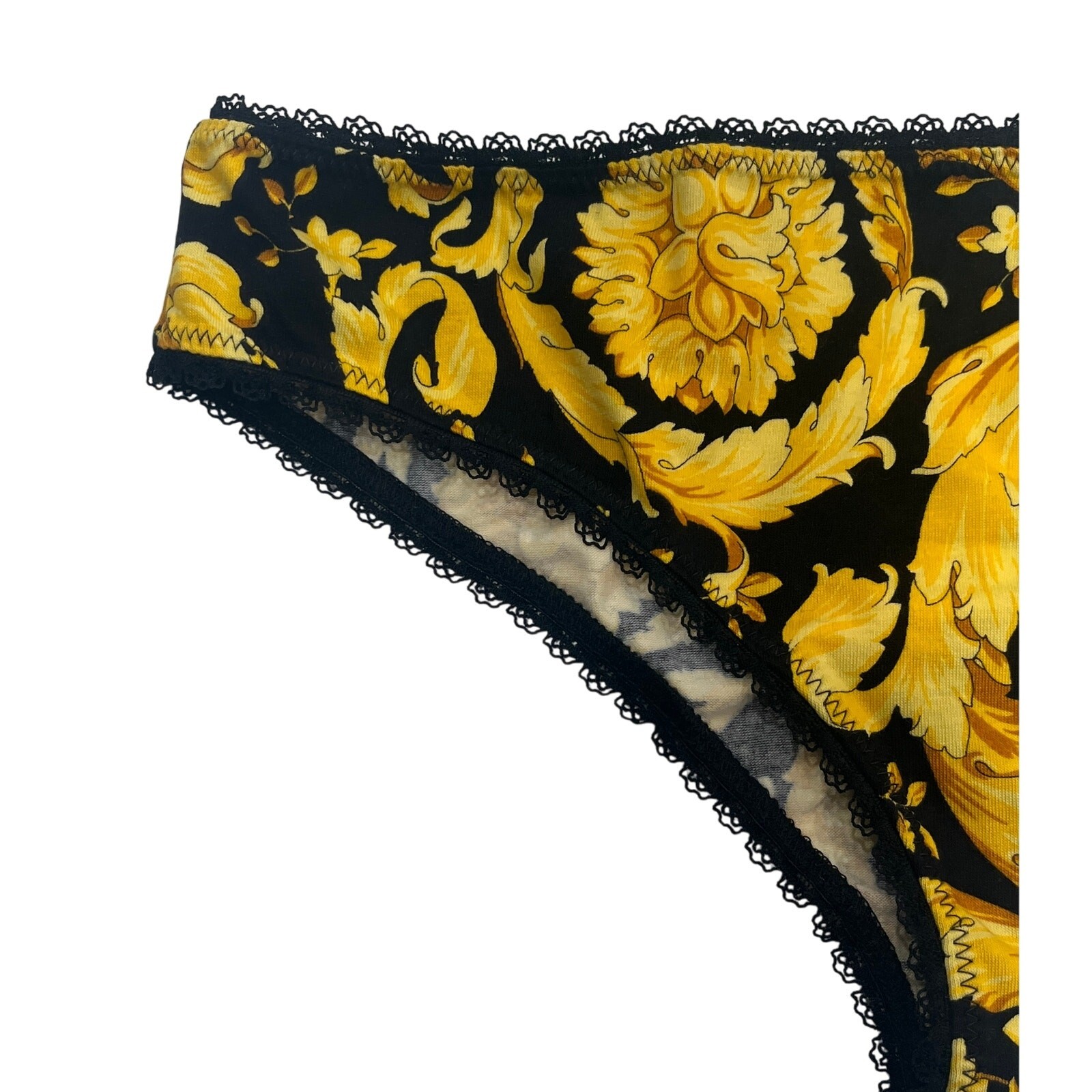 M2-37 VERSACE Women's Barocco Cotton Panties Lace Trim Gold/Black Size 1/XS