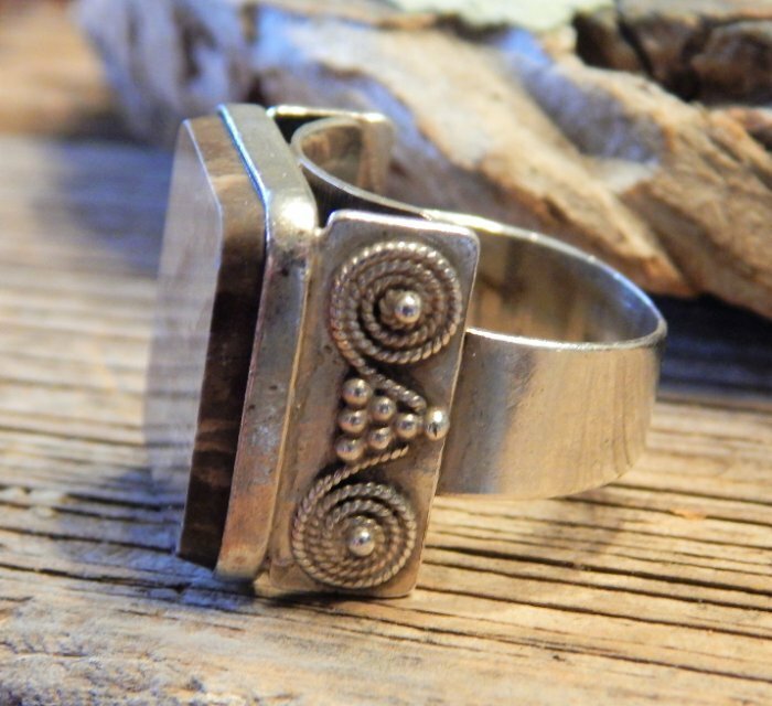 Vintage USSR Russia Soviet Hallmarked 875 Silver Charoite Stone Ring sz 7.25