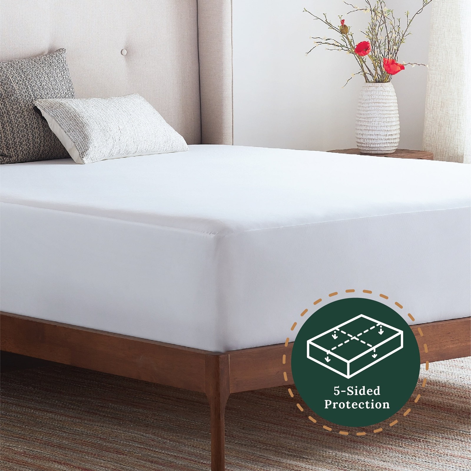 Rest Haven Hotel-Grade 5-Sided Fitted Mattress Protector, Twin