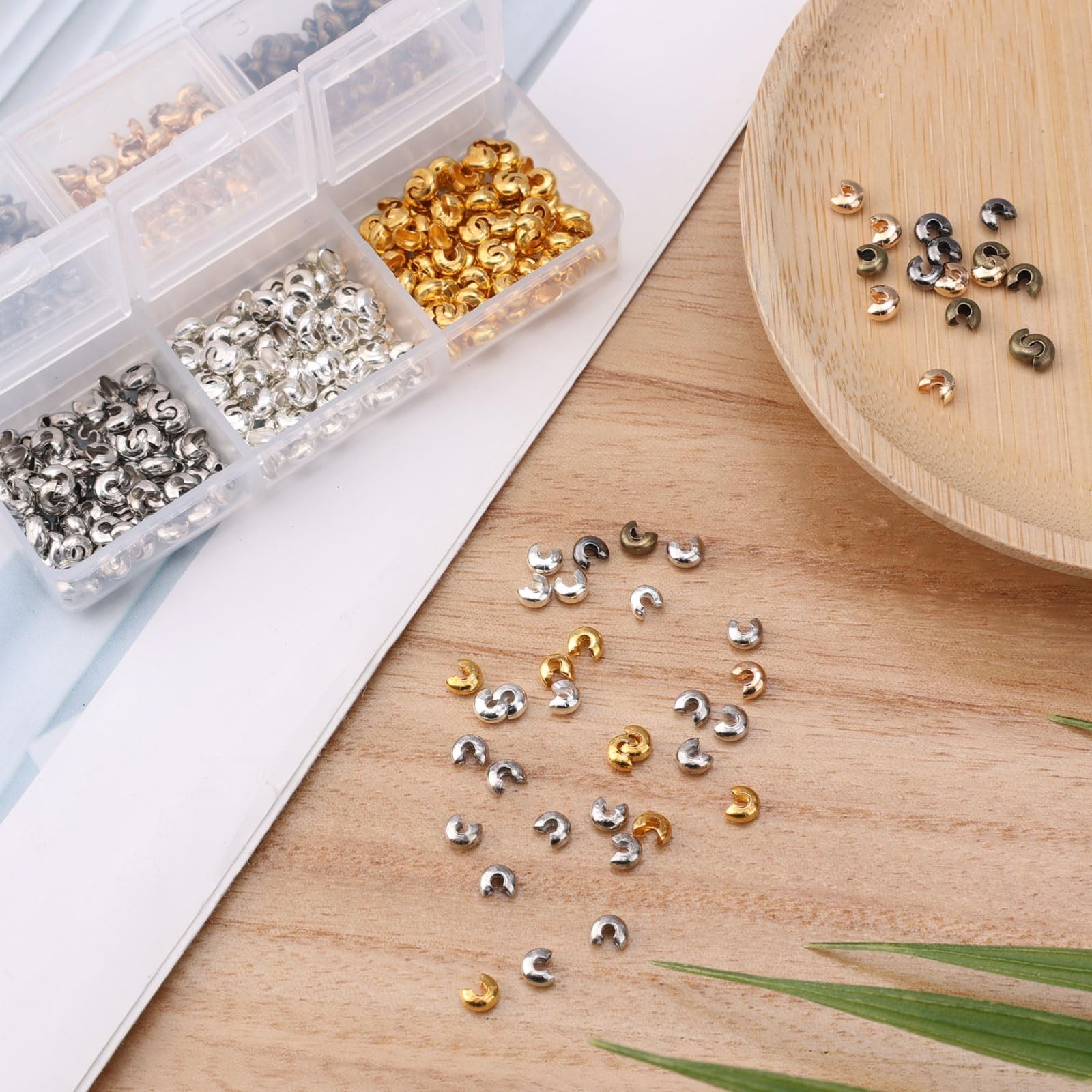 как выглядит 600 Pcs 4mm Semicircular Crimp Beads Knot Covers for DIY Jewelry Making Bracelet фото