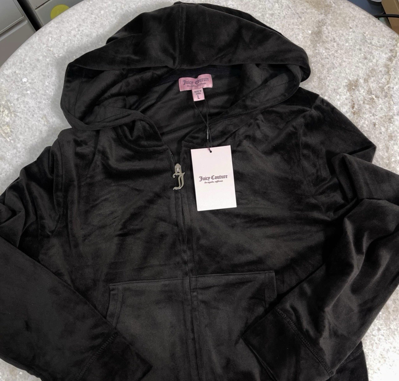 NWT JUICY COUTURE Velour Bling Tracksuit Hoodie Pants Black Size Large