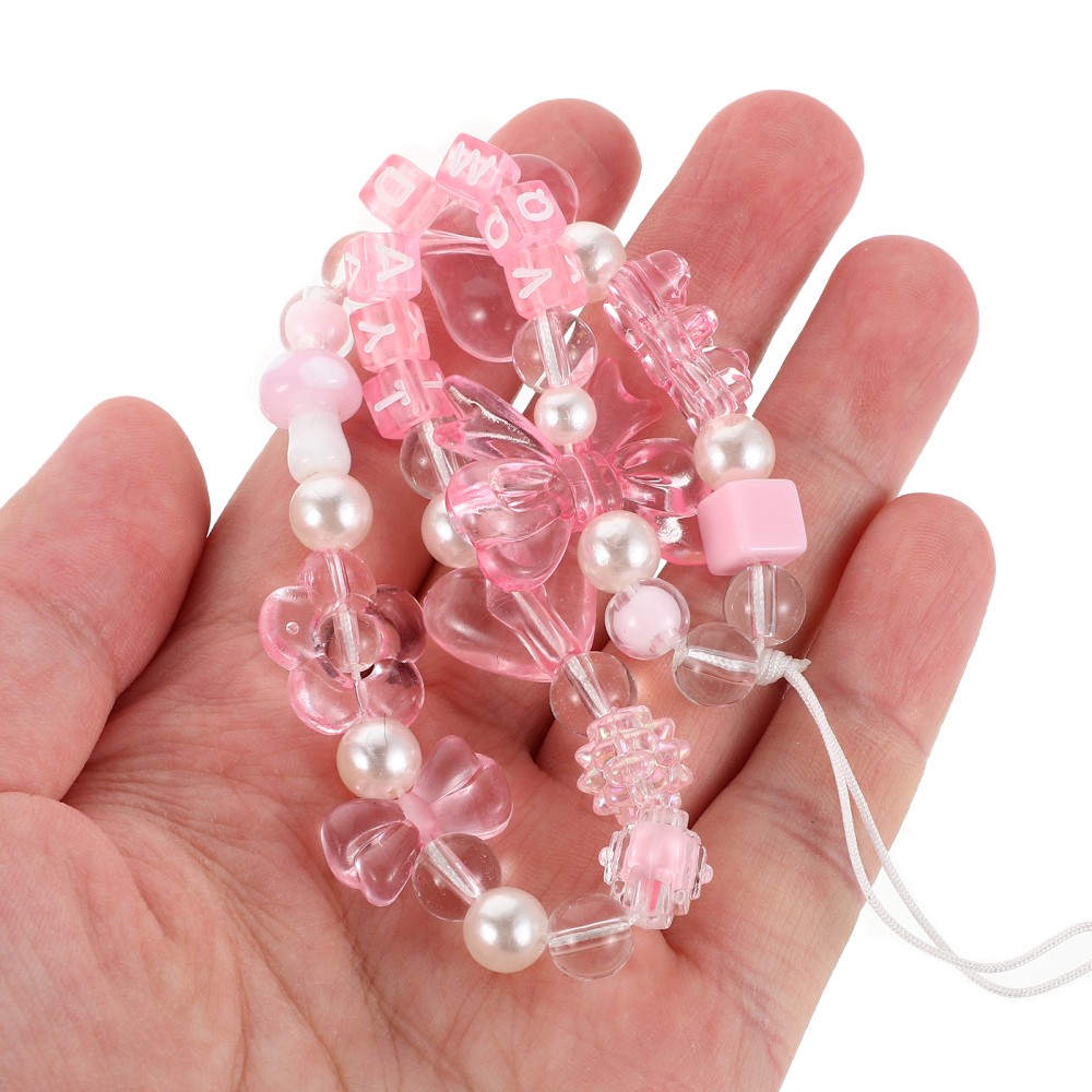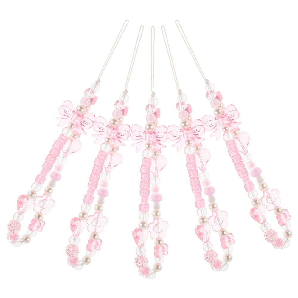 5pcs Phone Charm: Bow Bead Phone Lanyard - Wrist Strap With Heart And Bow Charm