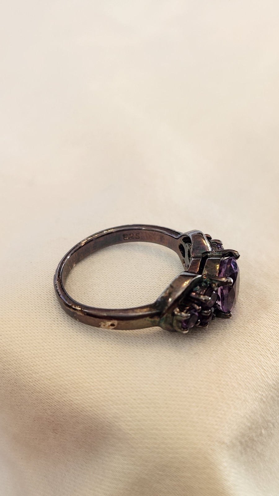 Sterling Silver 925 Oxidized AMETHYST Ring Size 7