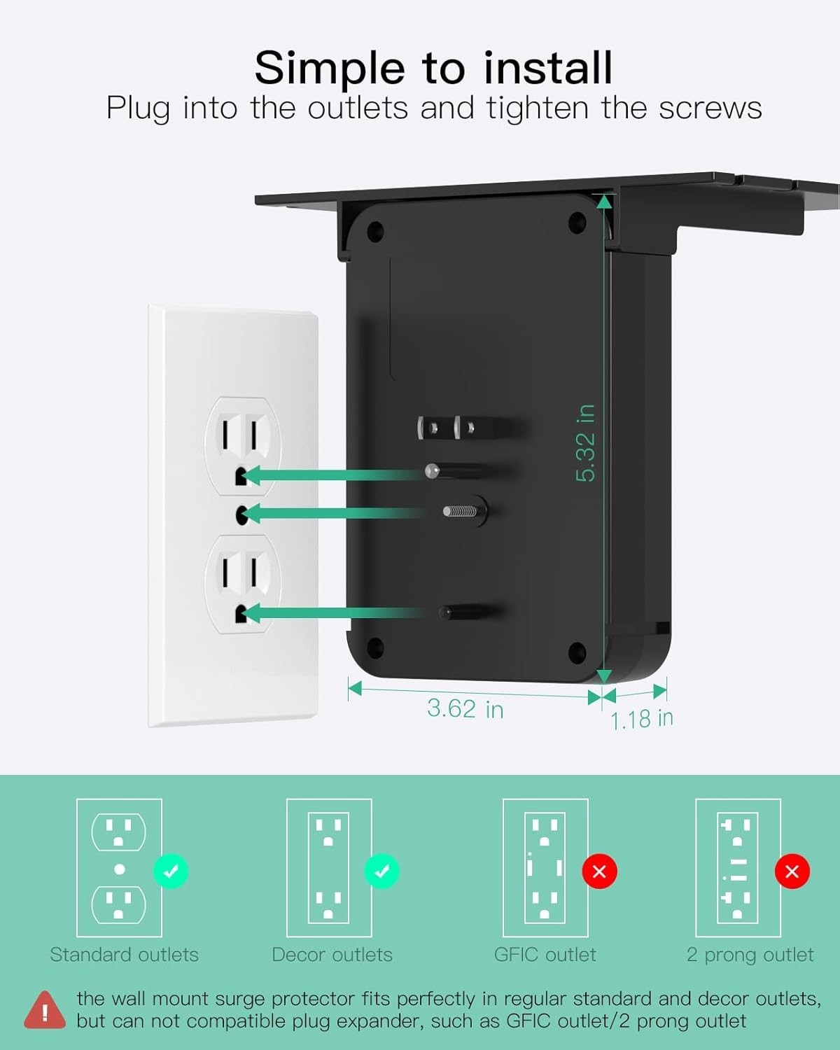 как выглядит Wall Outlet Extender - Surge Protector 6 AC Outlets Multi Plug Outlet with Sh... фото