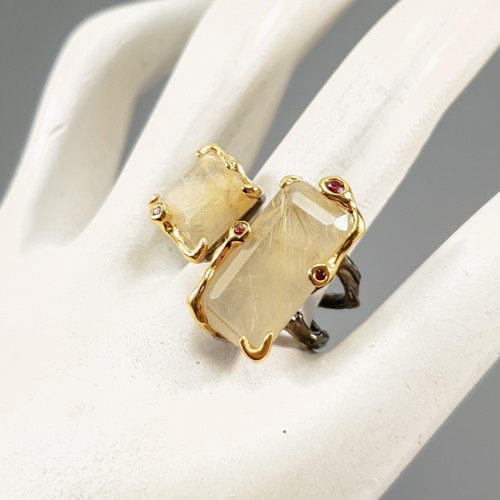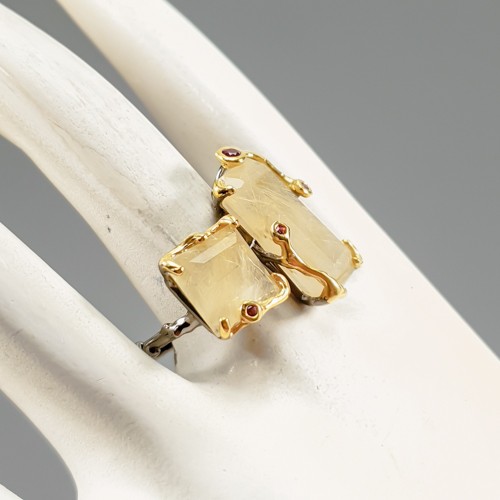 как выглядит Handmade 27 ct Natural Rutilated Quartz Ring 925 Sterling Silver Size 9 /R430271 фото
