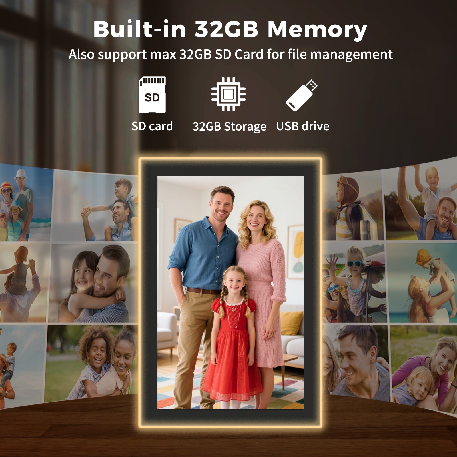 FRAMEO 10.1 inch Digital Photo Frame with Neon Light IPS Touch Screen 32GB