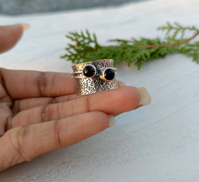 как выглядит Black Onyx Spinner Ring: 925 Sterling Silver Band Jewelry Ring All Size фото