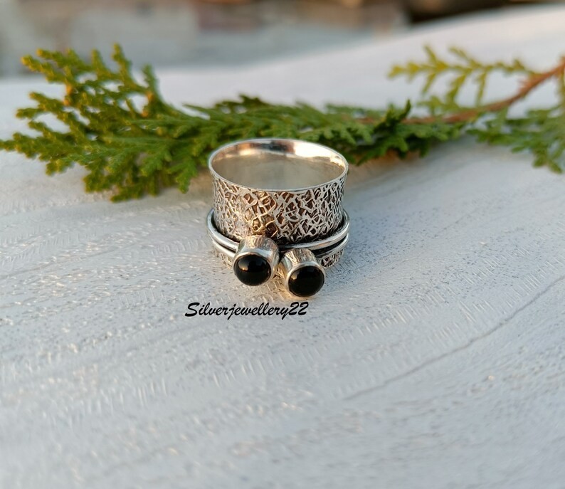 Black Onyx Spinner Ring: 925 Sterling Silver Band Jewelry Ring All Size