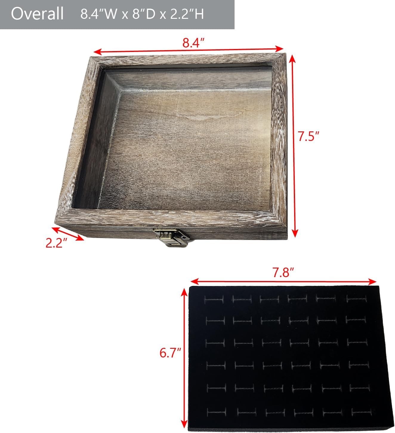 Особенности: Removable Tray, Tempered Glass Lid, Portable, Sturdy Metal Clasps, Hinges, Black Flocked Velvet