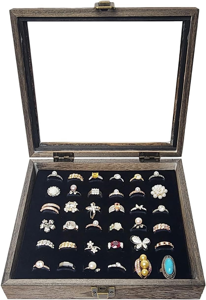 Showcase Your Jewelry with an Elegant 36 Ring Wood Display Case - Velvet Insert