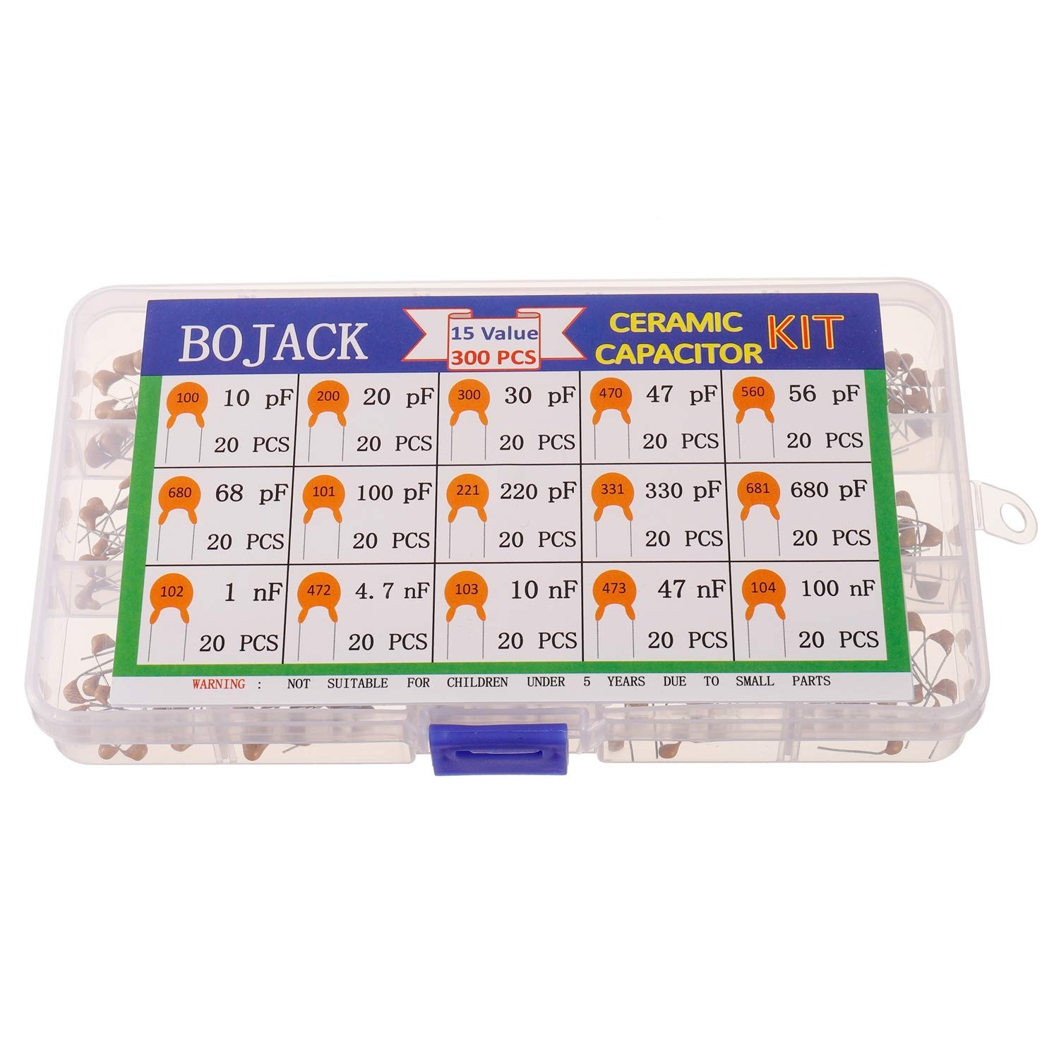 как выглядит 300 Pcs Ceramic Capacitor Assortment Kit 15 Values Multilayer Monolithic Set фото
