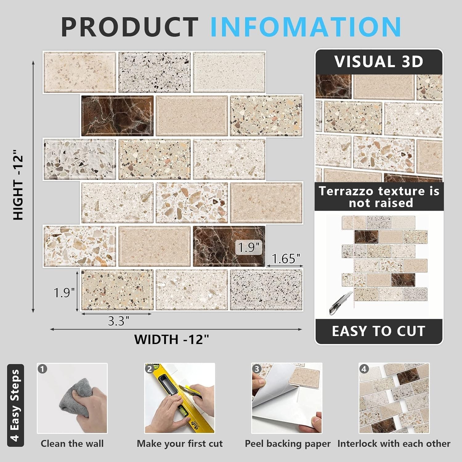 10-Sheet Terrazzo Look Peel and Stick Backsplash for Kitchen Bathroom - 12x12