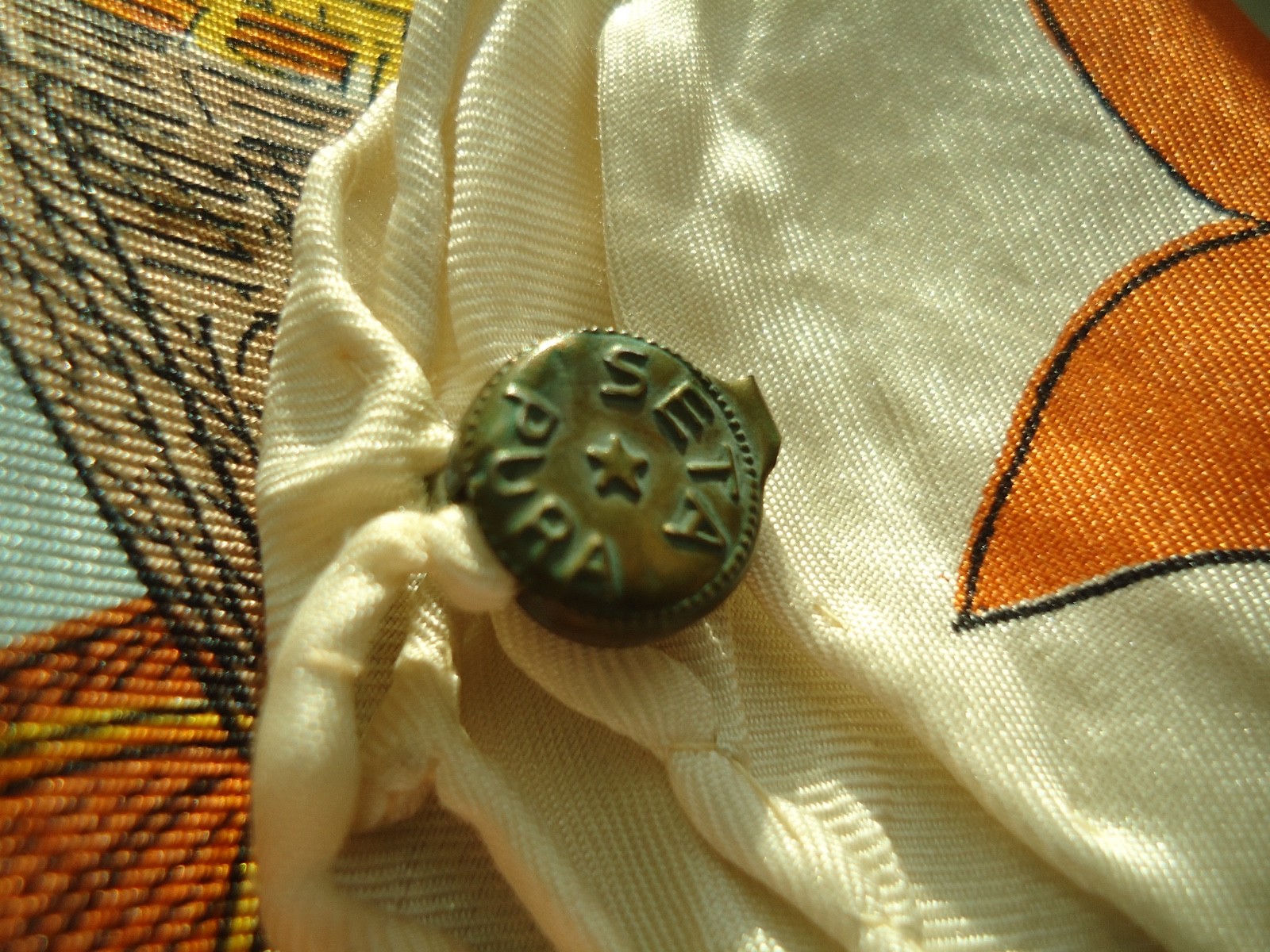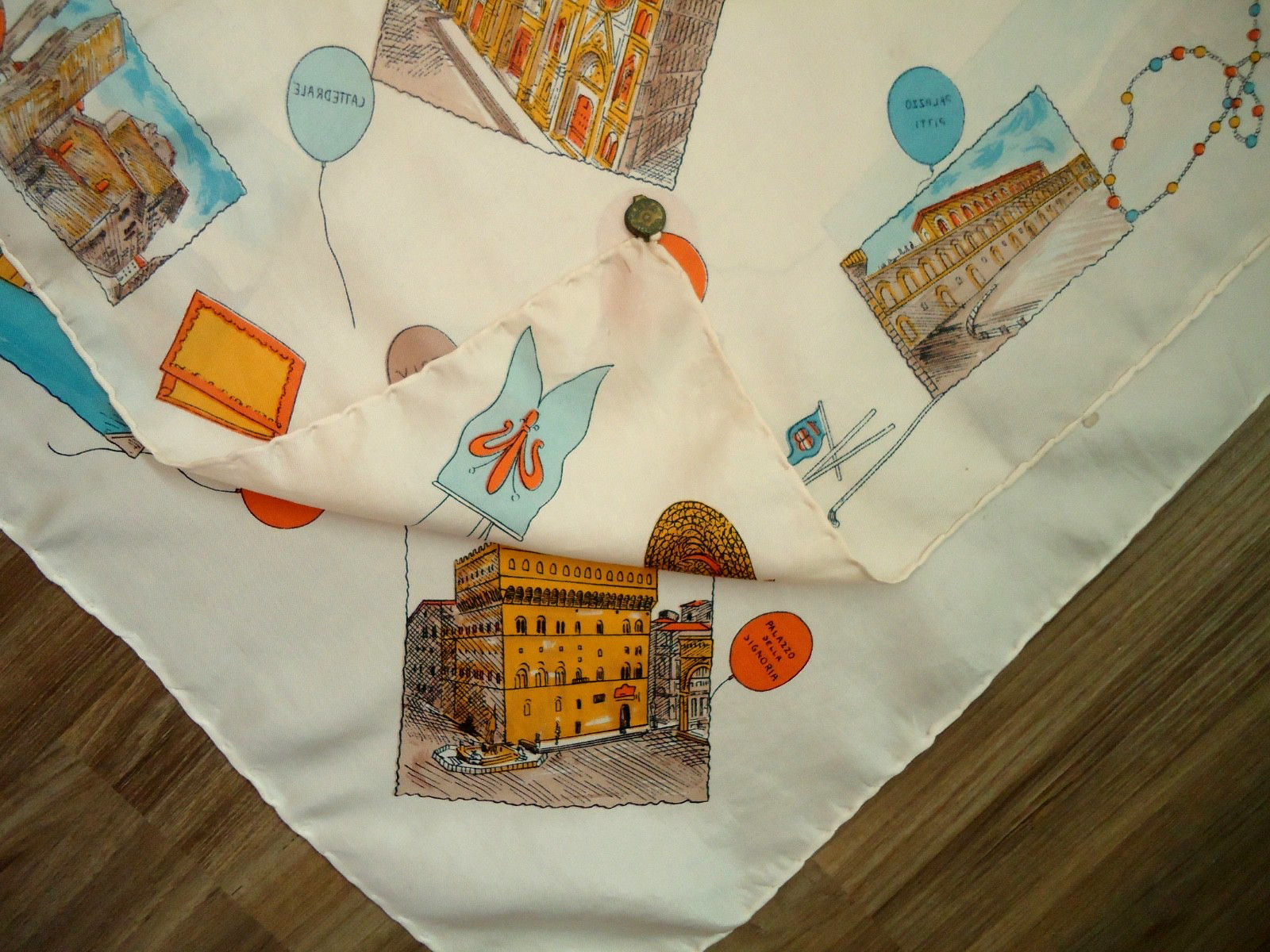Vtg 60s SETA PURA Italy Women's Scarf Hand Rolled Size-20x20 in