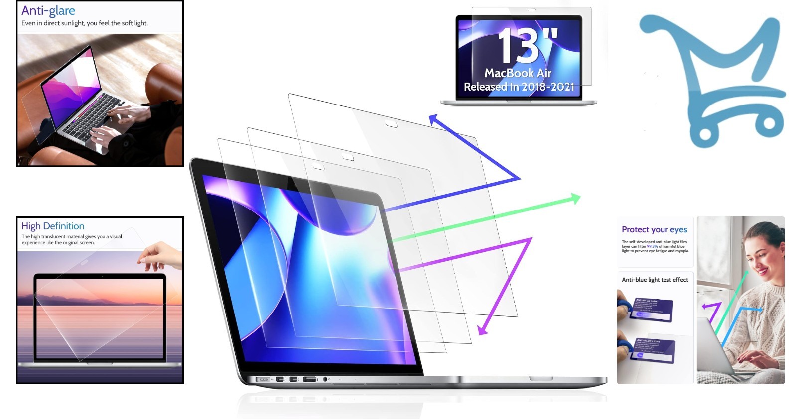 как выглядит 3-Pack Blue Light Screen Protectors for 13-Inch MacBook Anti-Glare UV Blocker фото