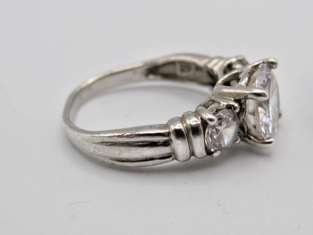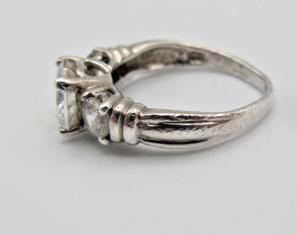 как выглядит Vtg 925 Sterling sz7 Ring 3 Rnd Stone Brilliant CZ w/CZ Side Accents Ring 3.6gr фото