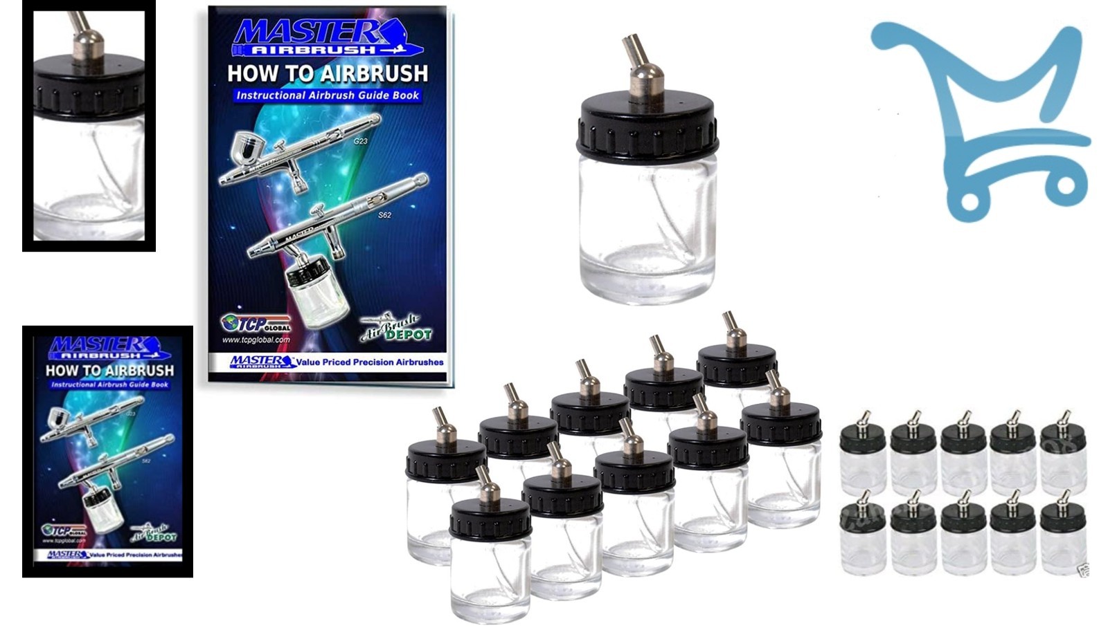 Pack of 10 Glass Jar Bottles 22cc 0.75oz with 30 Down Adaptor for Airbrushes