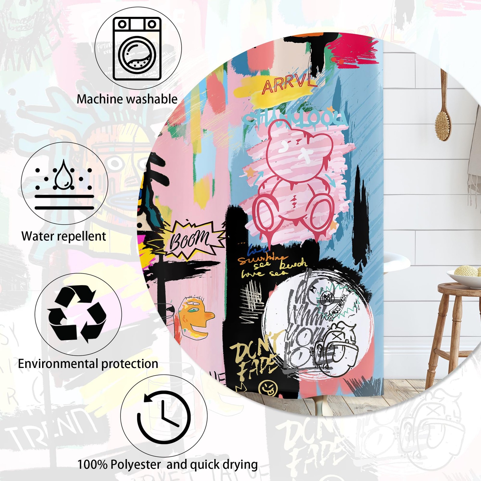 как выглядит Abstract Colorful Graffiti Art Shower Curtain Funny Cool Men Shower Curtain f... фото