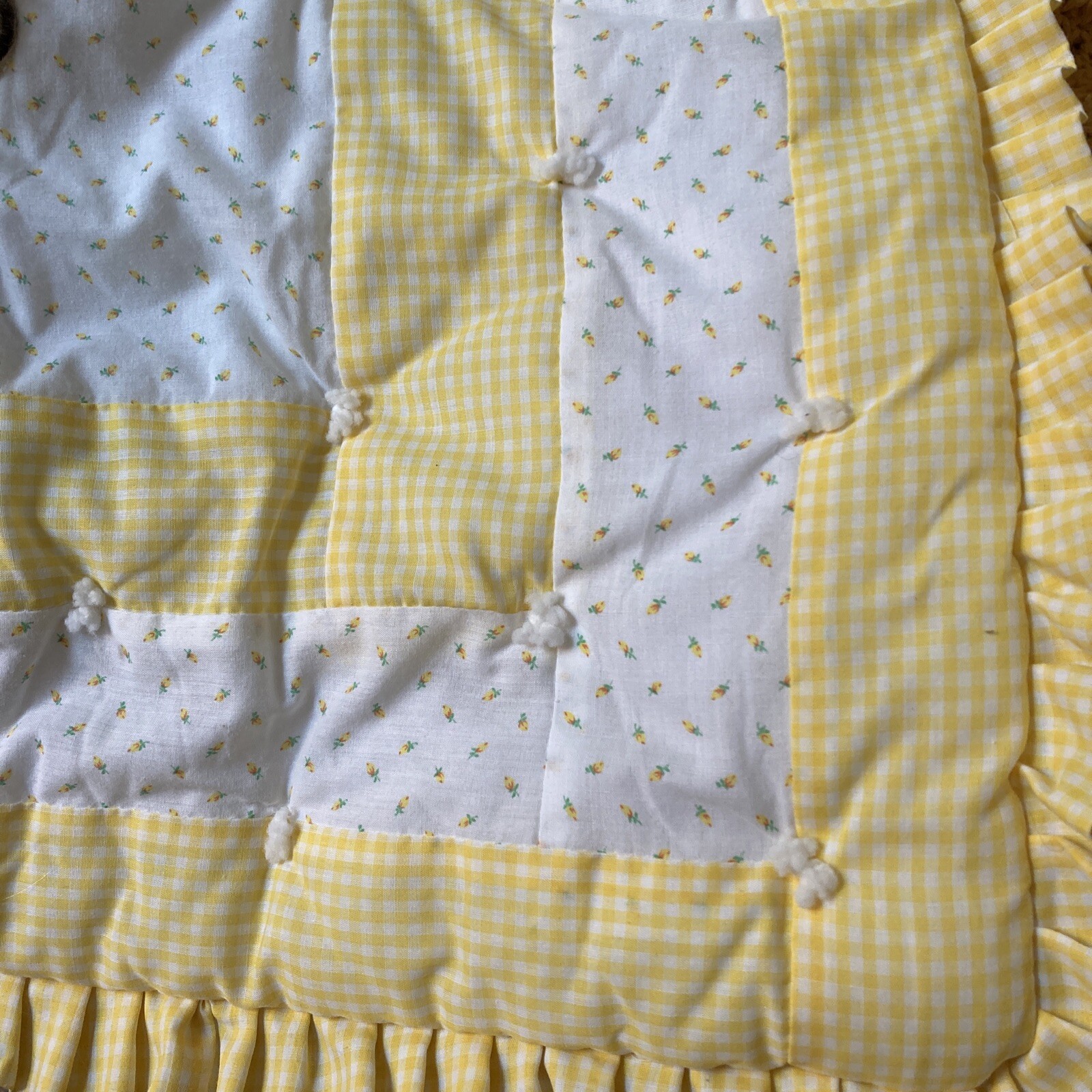 как выглядит Teddy Bear Quilt Yellow Gingham Roses Nursery Baby Bedding 50 x 40" фото