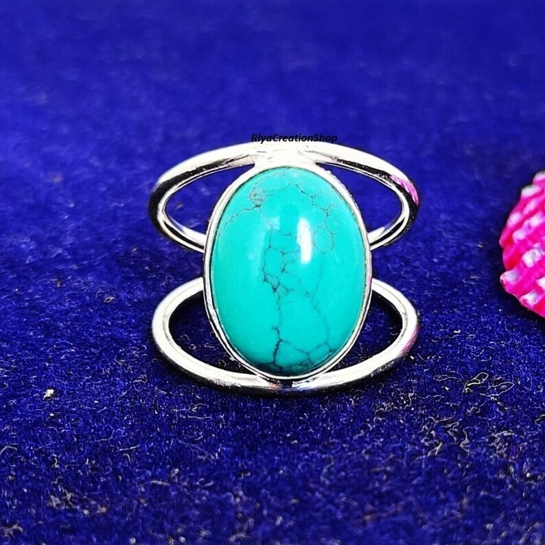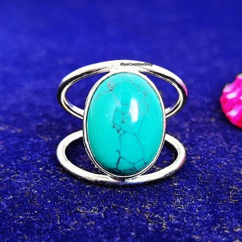 Handmade Oval Turquoise Ring: 925 Sterling Silver Boho Promise Ring , All Size