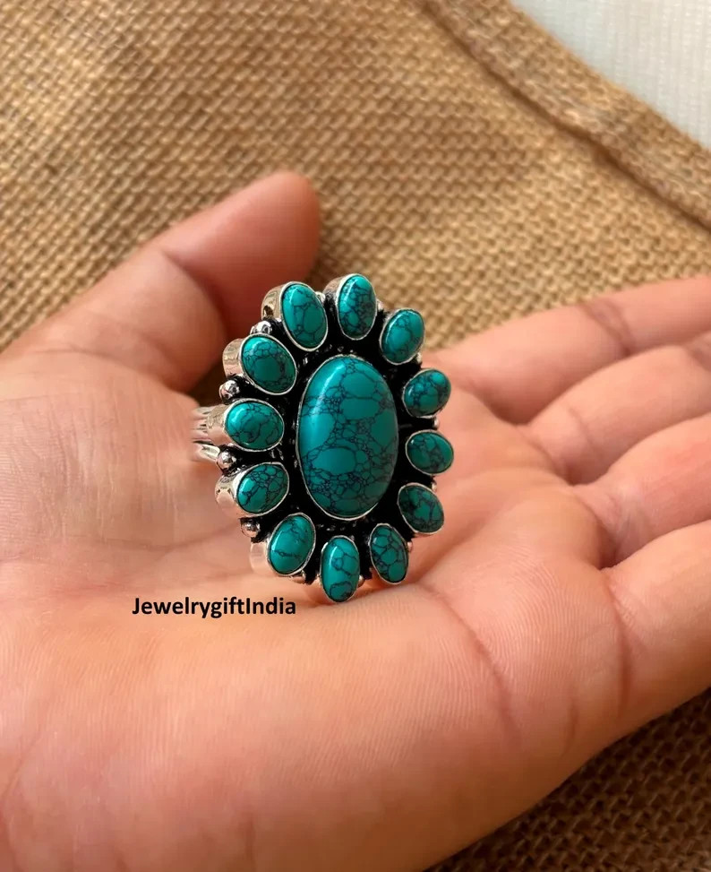 Turquoise Sterling Silver Ring: Handmade Boho Engagement Jewelry All Size